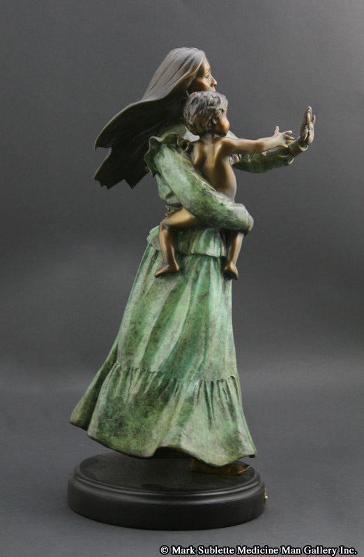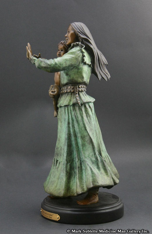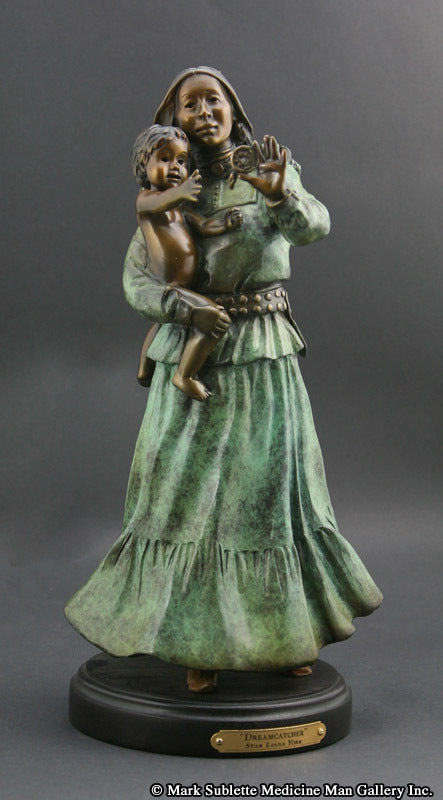 10″"A custom practiced by some Plains Indian tribes was fashioning a leather wrapped circle and tying string through its middle in the pattern of a spider web. An opening was left in the center of the web to which was attached various good luck charms. Fastening the talisman to the head of a cradleboard allowed the child’s good dreams to pass through the web’s hole, trapping the malevolent forces in the web. The Apache woman has traded for the talisman – called a Dreamcatcher – and views it in wonder and hope for her young child’s future... determined to give the child every advantage – using magic and mysticism to insure the child’s well being." - Star Liana York