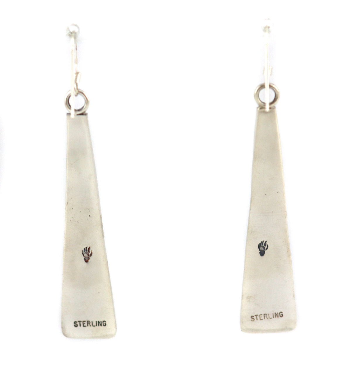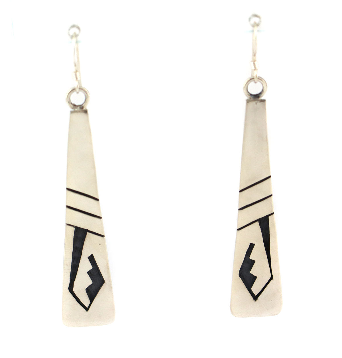 Elmer Satala, Jr. - Hopi - Contemporary Sterling Silver Overlay French Hook Earrings, 2.75" x 0.5"