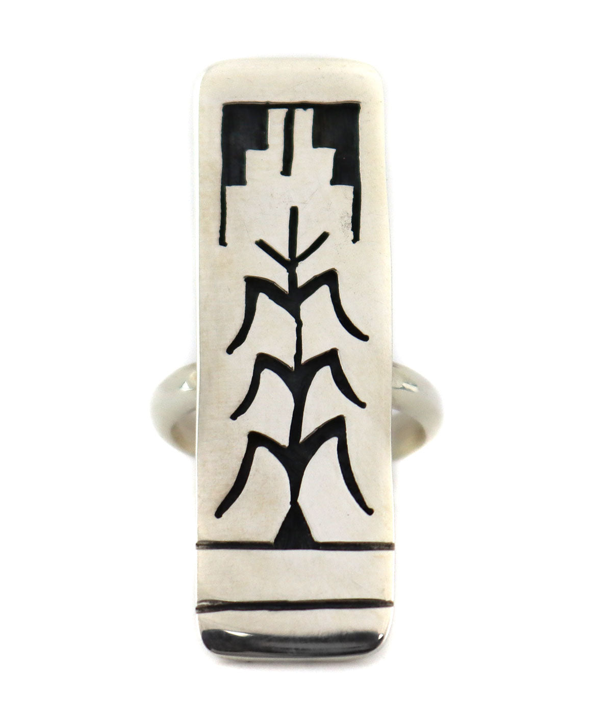 Elmer Satala, Jr. - Hopi - Contemporary Sterling Silver Overlay Ring with Cornstalk Design, size 6.5