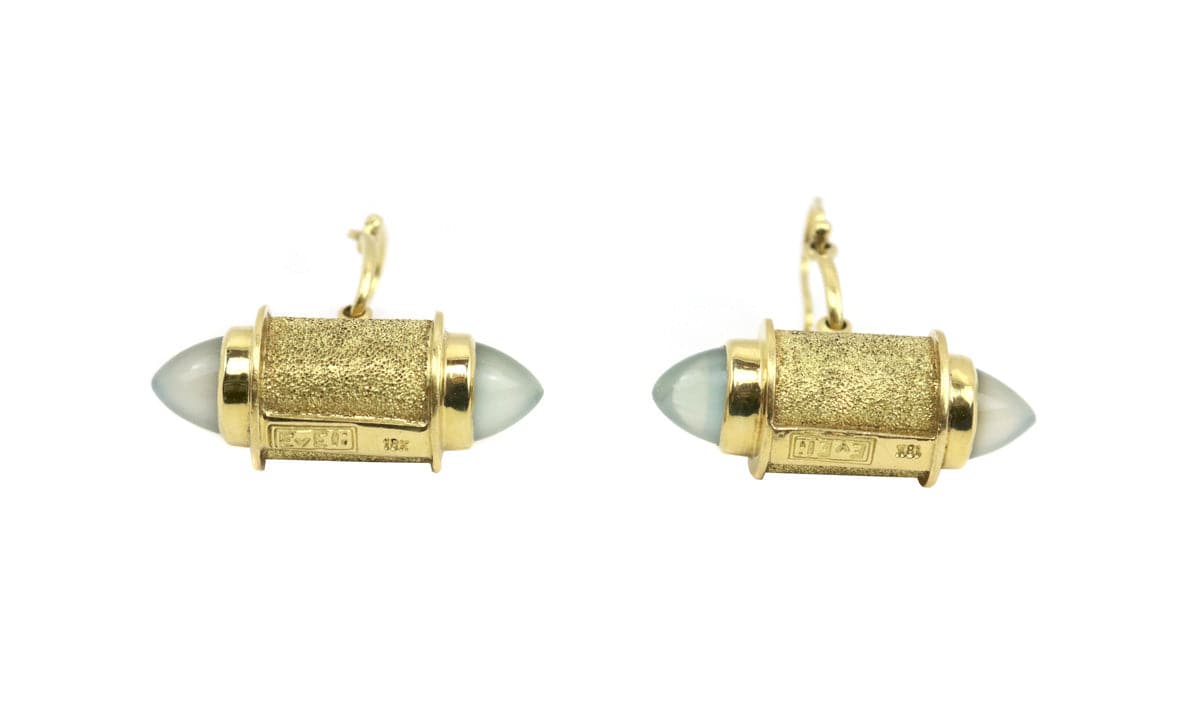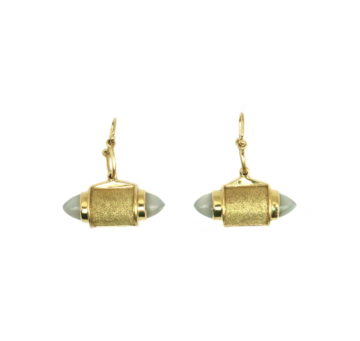 Eveli Sabatie - Contemporary Aventurine and 18K Gold Screw-back Earrings, 1.375" x 1.25" (J15406)