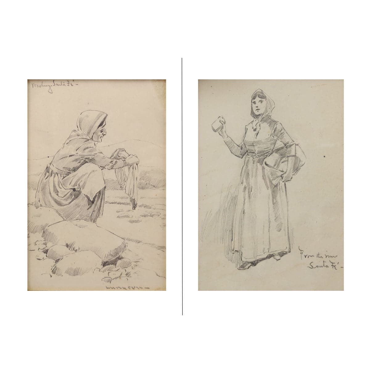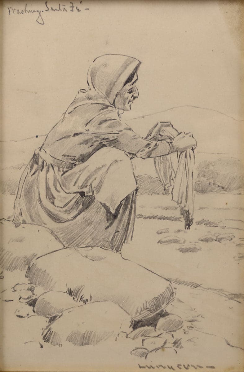 Fernand Harvey Lungren (1857-1932) - Washing Santa Fe - Double-Sided Drawing (PDC91660-0521-003)