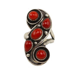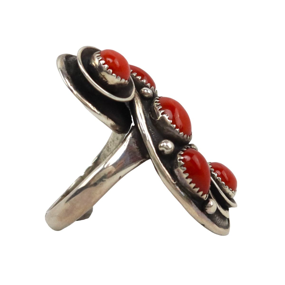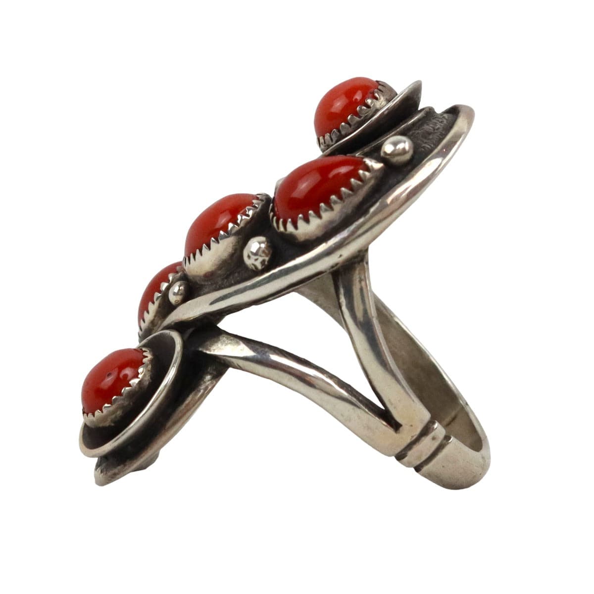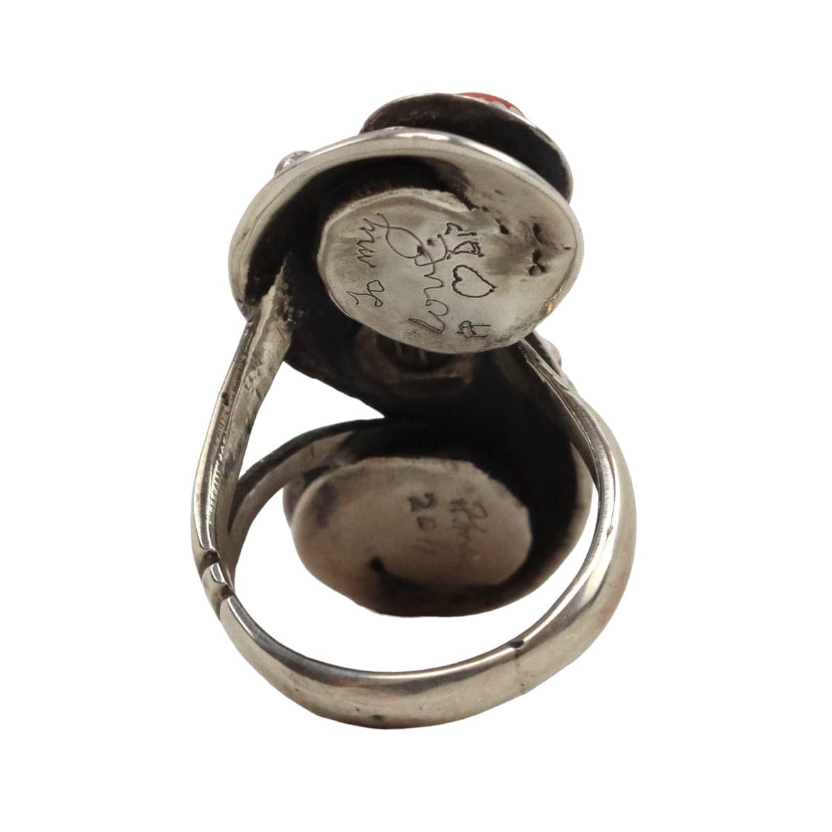 Frank Patania Sr. (1899-1964) - Coral and Silver Sliver Overlay Ring c. 1960s, size 9 (J91699-1022-011)