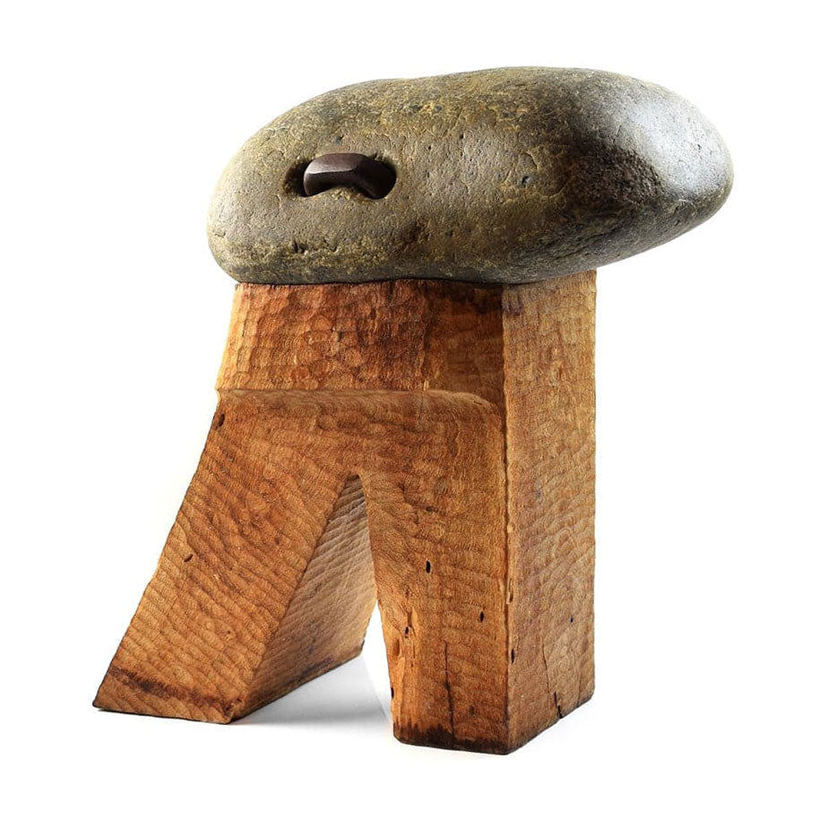 Ex private collection in Oregon. The consigner has authorized us to lower the price from $3,950 to $3,200. This is a great collecting opportunity to acquire a piece from Borcherdt's Artifacts collection. About the Artifacts collection: The Artifacts collection was created by Fred Borcherdt from 1979 to 1981. This series was designed to pose questions to the viewer and to shift artistic focus from external experimentation to internal explorations with personal significance. About Artifact #11: Artifact #11 was made in 1979 and is constructed of stone, steel, and wood. It was featured in the Arizona Daily Star newspaper and was exhibited at the following galleries: 2nd Annual Cooperative Members' Show - Dinnerware Artists' Cooperative, 1979 Gallery Centella Mark Bowles and Fred Borcherdt show - Mark Sublette Medicine Man Gallery, Tucson, Arizona, April 5, 2013 Artifact #11 is depicted on page 60 of the sculptor's book, Fred Borcherdt: Fifty Years of Sculpture.
