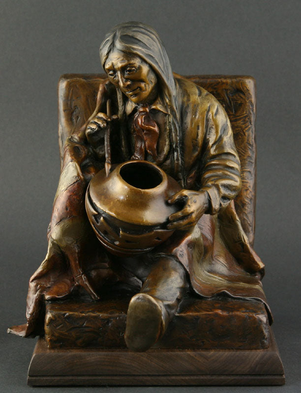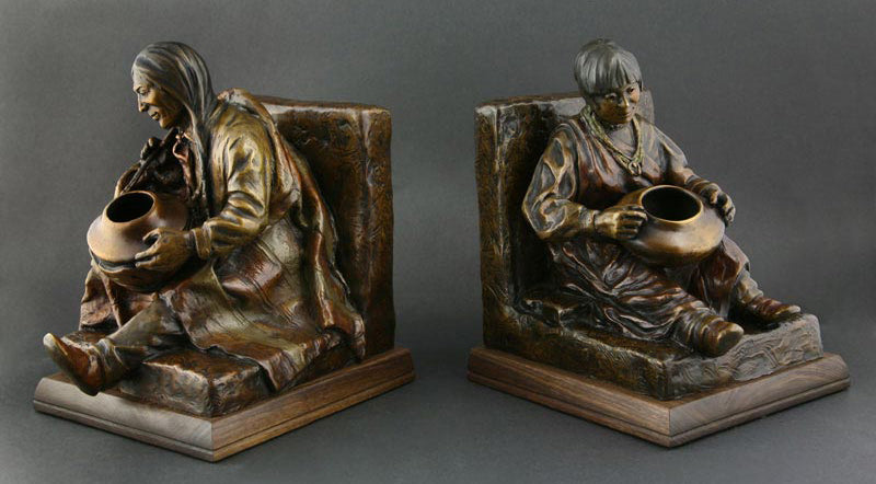 "I have many books on Native American pottery. While researching for my Maria of San Ildefonso and Julian sculptures, I acquired quite a few books on their work. I thought it only fitting that I should sculpt bookends to commemorate the beautiful pottery produced by the gifted hands of these wonderful artists" - Susan Kliewer.