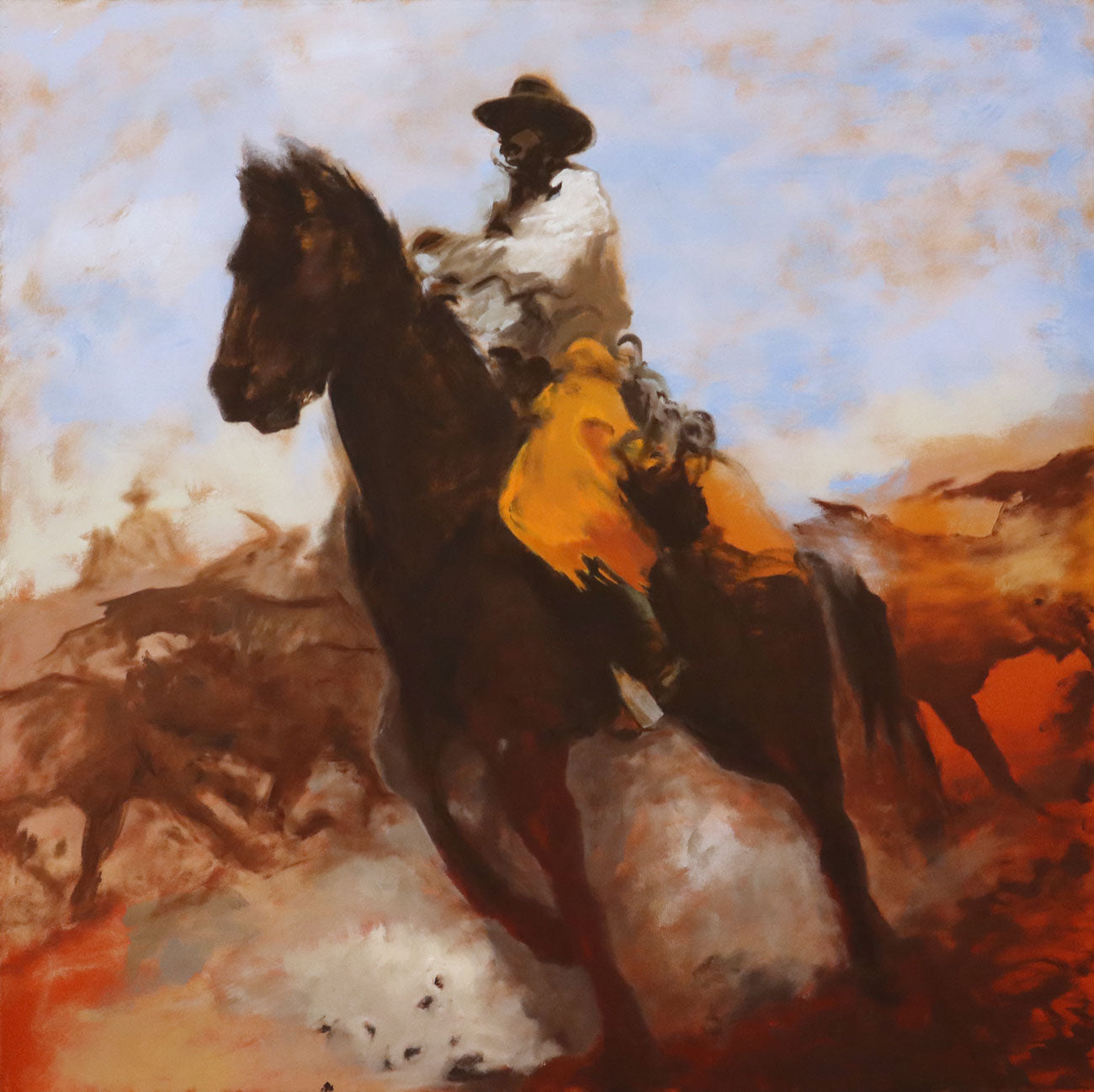 Oil and marble dust on panel. 31.25" x 31.25" framed. Featured in the Far West Show/September 2025, in Austin, Texas.