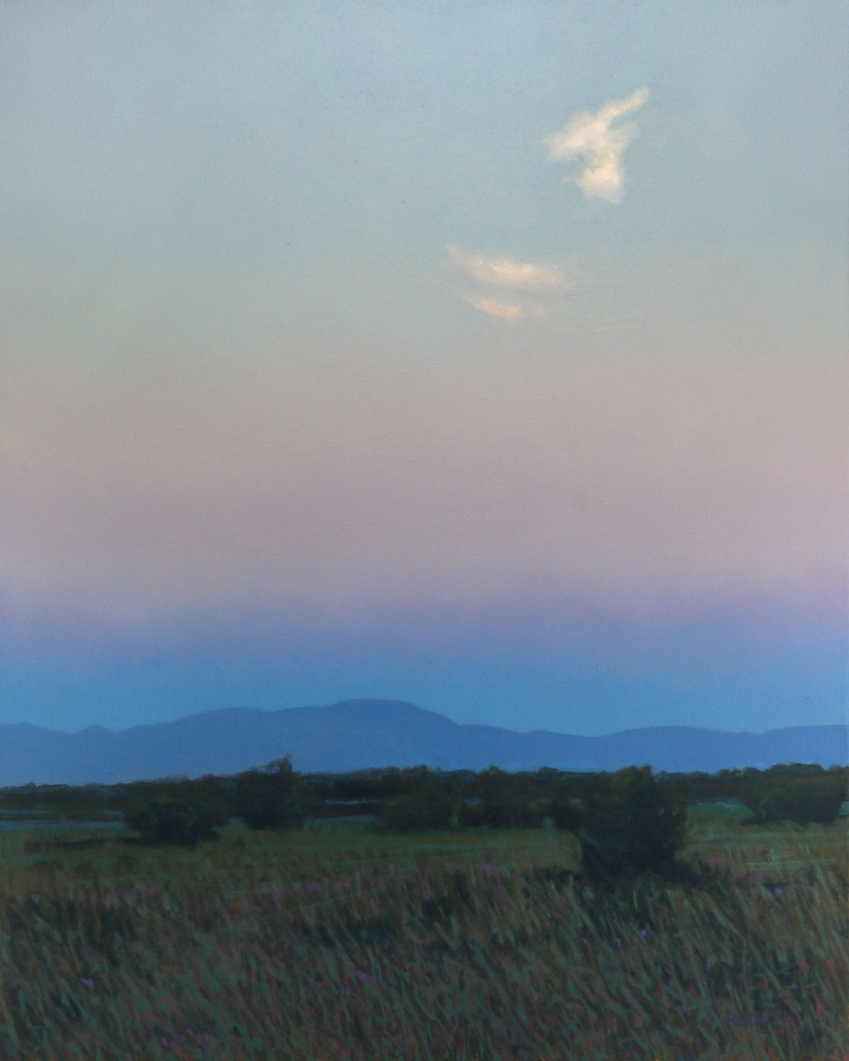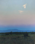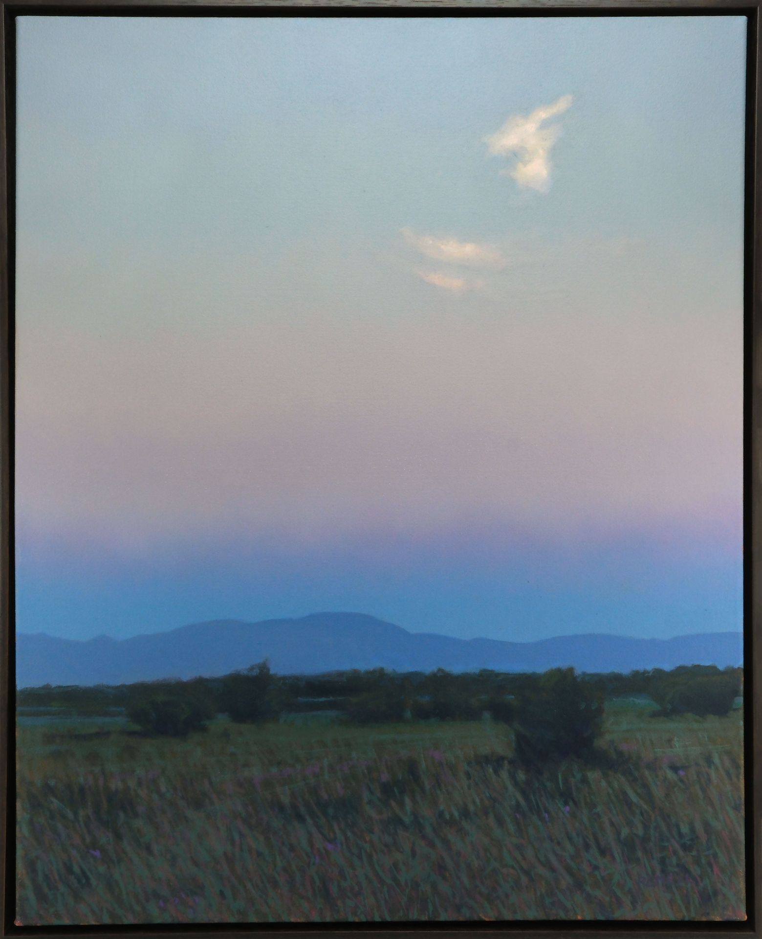 31" x 25.25" framed. "An early morning view to the west with the silhouette of the Dragoon Mountains almost lost to the sky and the deep grasslands in subtle harmony with the vastness of the sky finding purpose and balance with the small clouds of the edge of day. I often use a shift of scale, as with the clouds in this painting, to find visual balance in a provocative way." - Glenn Renell