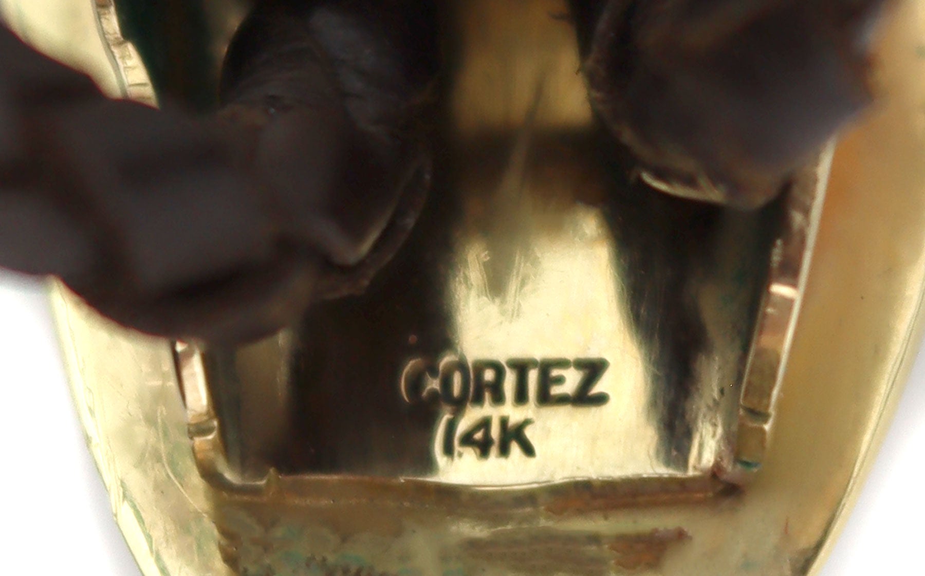 Bolo Tie: 29.8g, 41" length, 1.375" x 1" bolo. Hallmarked "Cortez" on verso.