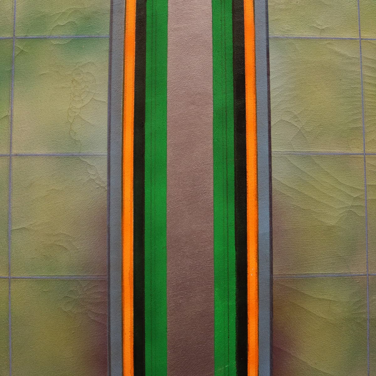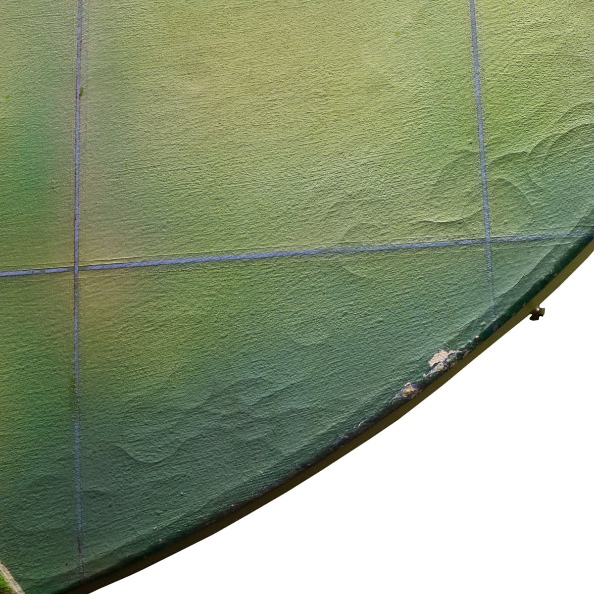 The frame measures 48.5" in diameter. Finished in gallery wrap style. No frame needed. There is some overall craquelure to the surface of the painting.The periphery of the canvas exhibits scattered areas of paint loss - Please see images. Acquired from a private collection in Arizona. The owner acquired this from Patrick O'Reilly estate. O'Reilly was a collector, as well as an appraiser.