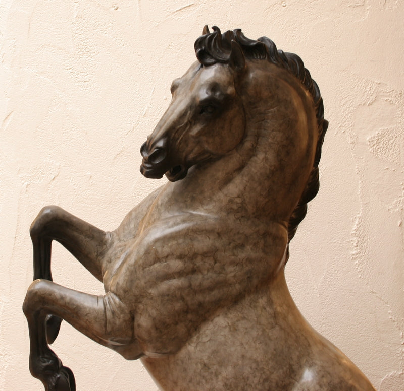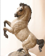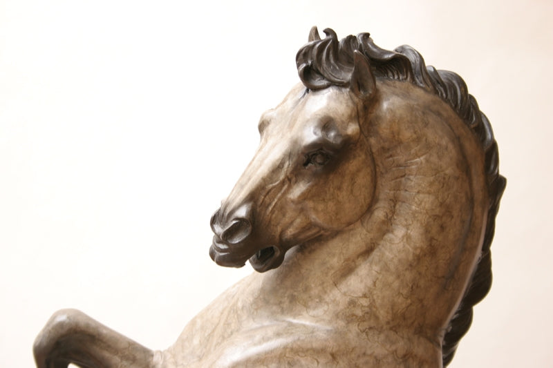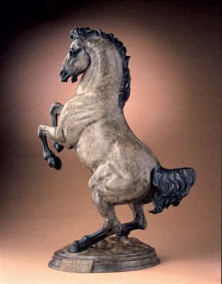 36″"An enduring appeal of horse imagery is that it can embody both powerful male and female symbolism. The horses depicted on the ceremonial caves of Paleolithic man suggest fertility and abundance, whereas the horse in Renaissance art, once equines were developed into tools for battle, became strongly male. Once I began to consciously consider the horse as I have rendered it in my own work, I realized that I have mostly focused on the female side . . . (unsurprising given my personal interest in breeding). So I decided to go back to a master few humans have surpassed in brilliance over the millennium, and study what he had to say on the subject. In rendering that subject in the style and with the essence I glean from his drawings, I feel I can (like with the Rock Art drawings), better understand his perspective through the act of recreating his images. Leonardo Da Vinci admired the horse's ability to truly become an extension of man. He has drawn many comparisons of human and equine facial expressions that reflect this. His equine sketches are an amazing blend of the male/female power: rounded voluptuous shapes infused with bulging muscles and fierce expression. His horses training for war have the passion and intensity of any human warrior he portrayed. Da Vinci recognized the value of such a creature to the man of his culture... power-driven, war-oriented. And the horse appealed to the further enlargement of oneself with their regal, noble demeanor and presence." - Star Liana York