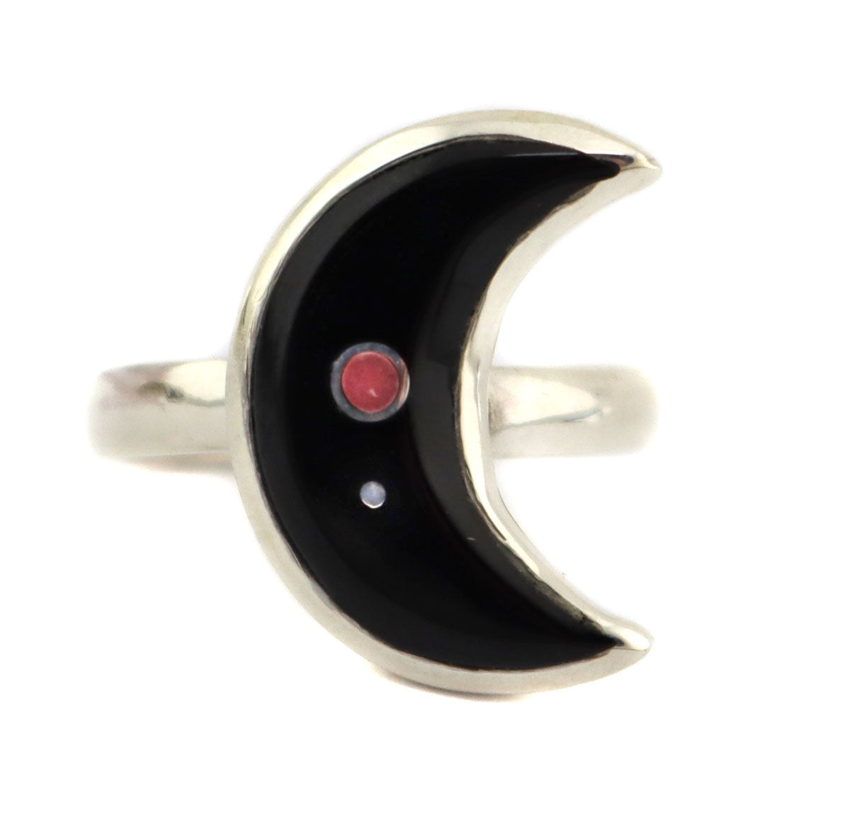 Hope Benally - Navajo - Contemporary Jet and Mother of Pearl Channel Inlay and Sterling Silver Crescent Ring, size 7