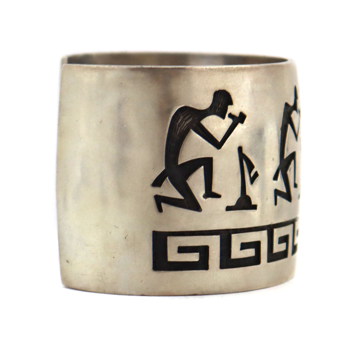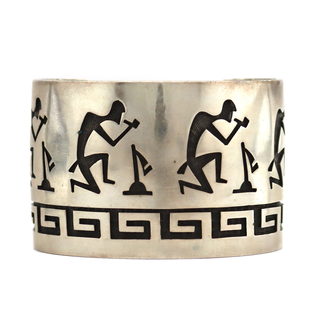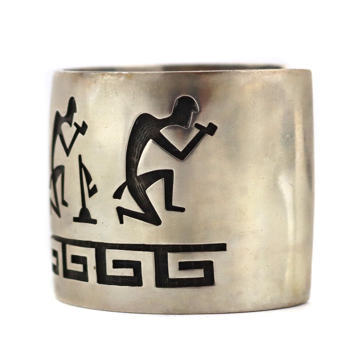 Hopicrafts - Silver Overlay Pictorial Bracelet c. 1970-80s, size 7.25