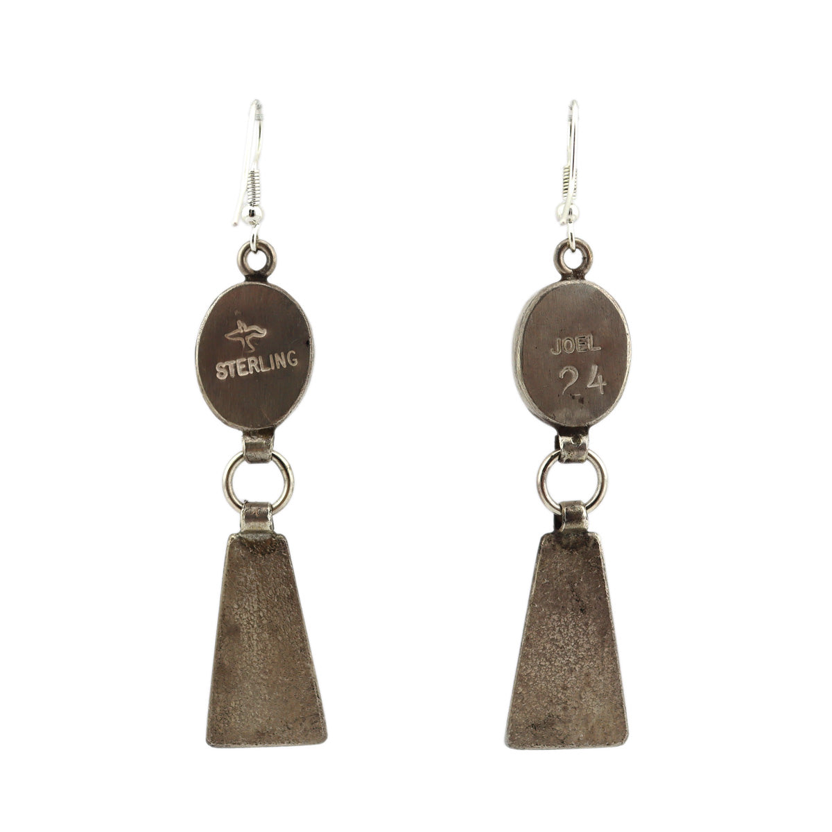 Joel Pajarito (b. 1984) - Santo Domingo (Kewa) - Contemporary Spiny Oyster and Silver Tufa Cast French Hook Earrings with Corn Pictorial, 3.125" x 0.625"