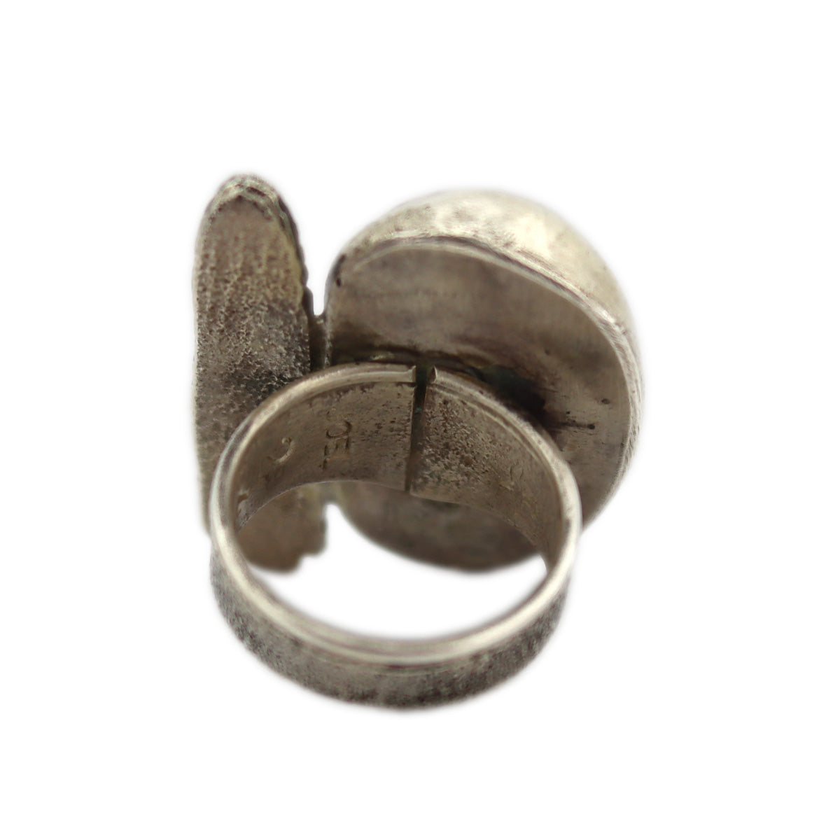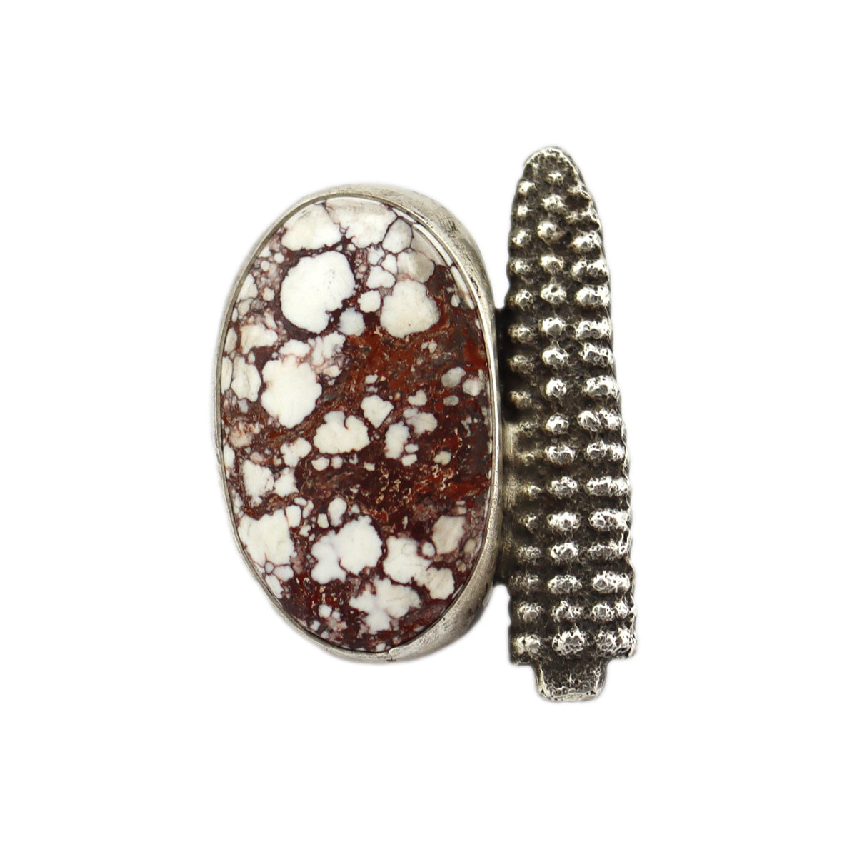 Joel Pajarito (b. 1984) - Santo Domingo (Kewa) - Contemporary Wild Horse Magnesite and Silver Tufa Cast Corn Ring, size 9