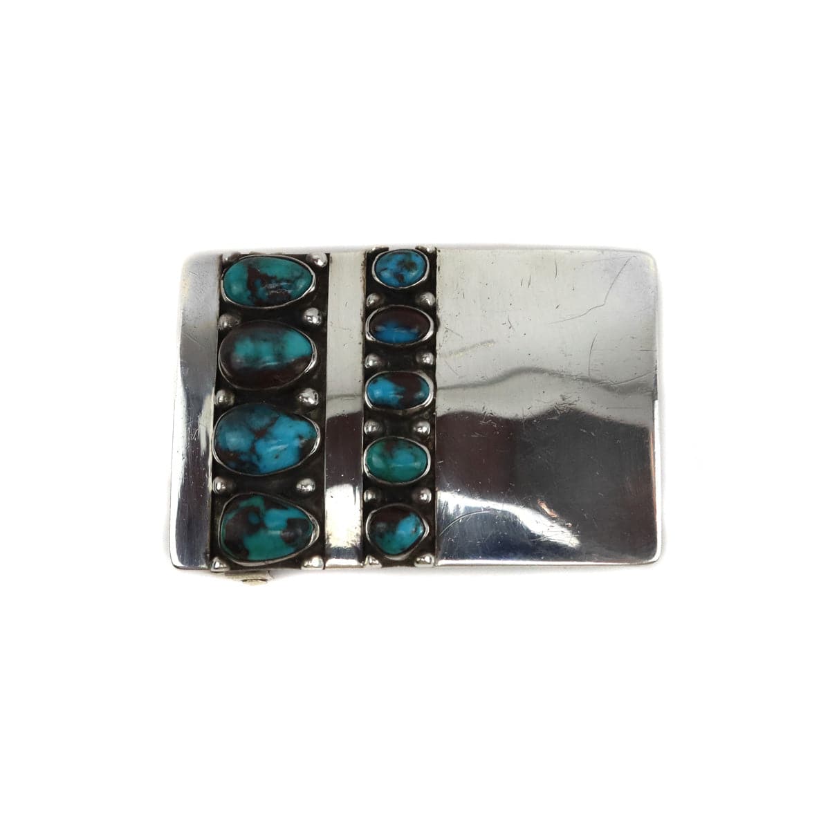 John G. Begay and White Hogan Shop - Navajo Bisbee Turquoise and Sterling Silver Belt Buckle c. 1970s, 2" x 3" (J15551)