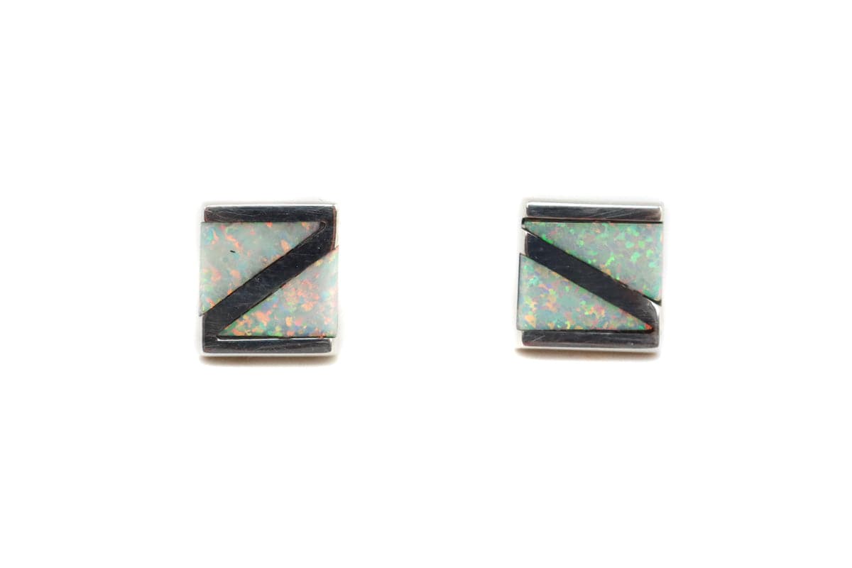 Jonas Siutza - Zuni Contemporary Opal and Sterling Silver Post Earrings, 0.375" x 0.375" (J15598)