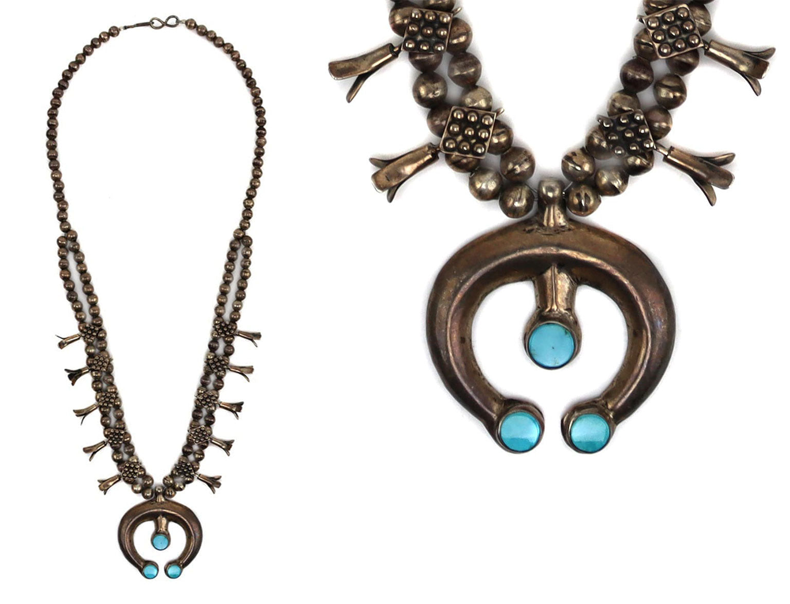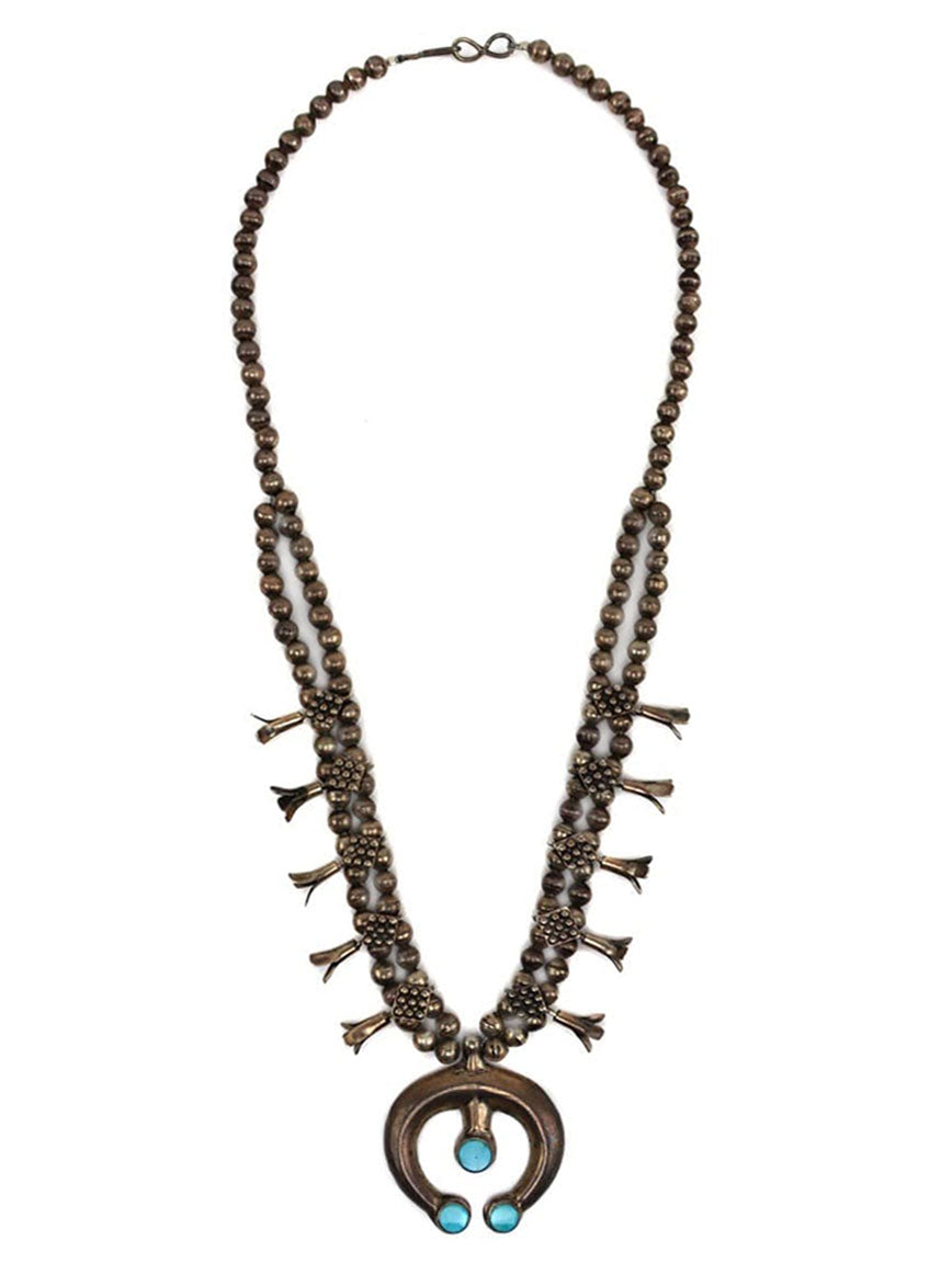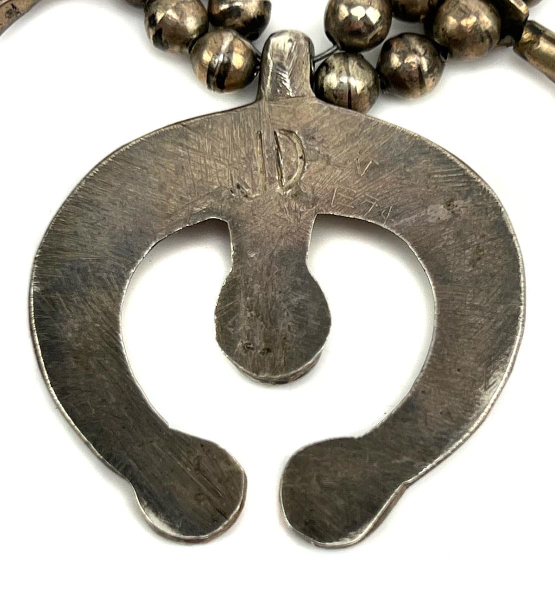 Juan De Dios (1882-1944) - Zuni - Turquoise and Silver Beaded Child's Squash Blossom Necklace c. 1930-40s, 20" length