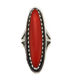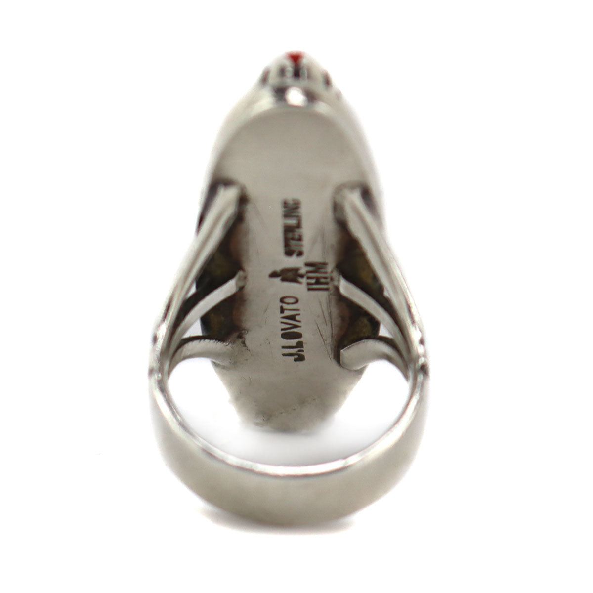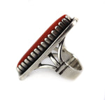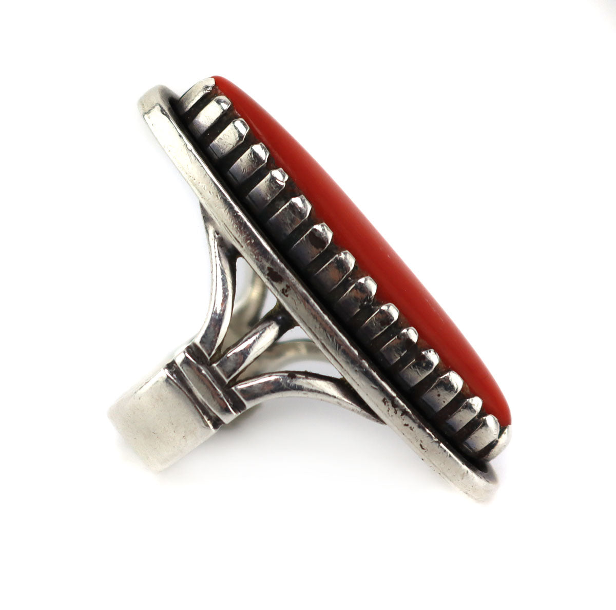 Julian Lovato (1925-2018) & Thunderbird Shop - Santo Domingo (Kewa) - Coral and Sterling Silver Ring c. 1950s, size 6.25