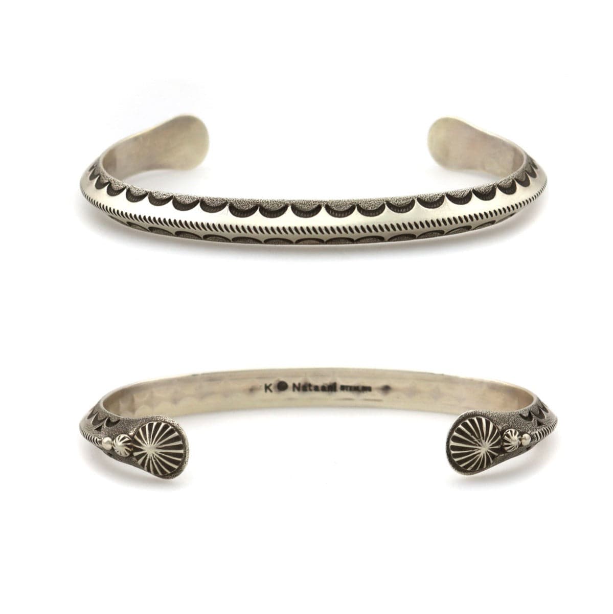 Kee (Karl) Nataani - Navajo Sterling Silver Stamped Design Bracelet, size 8 (J14184-007)