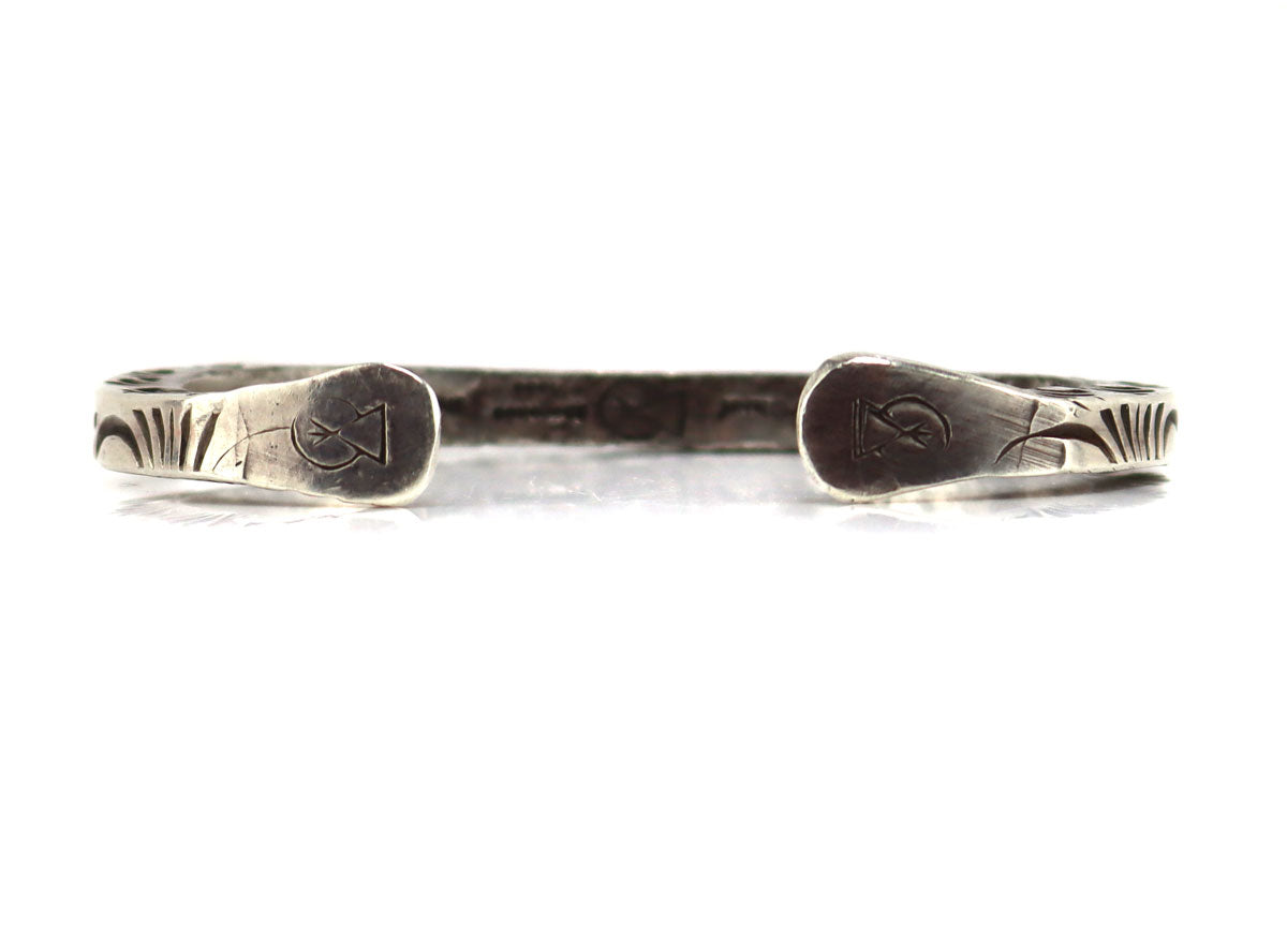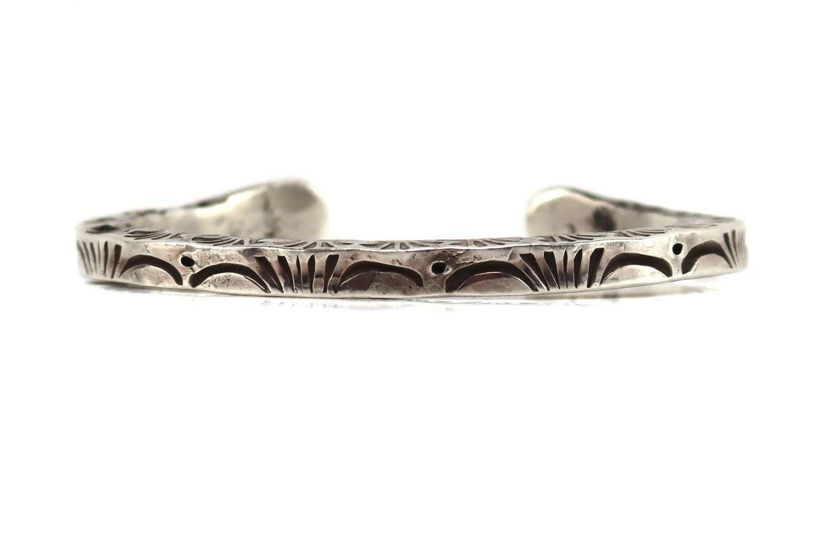 Leather Chief - Cherokee - Contemporary Silver Bracelet with Stamped Design, size 7