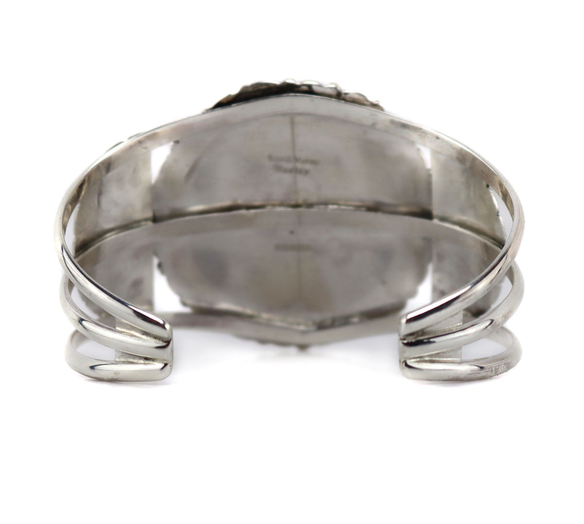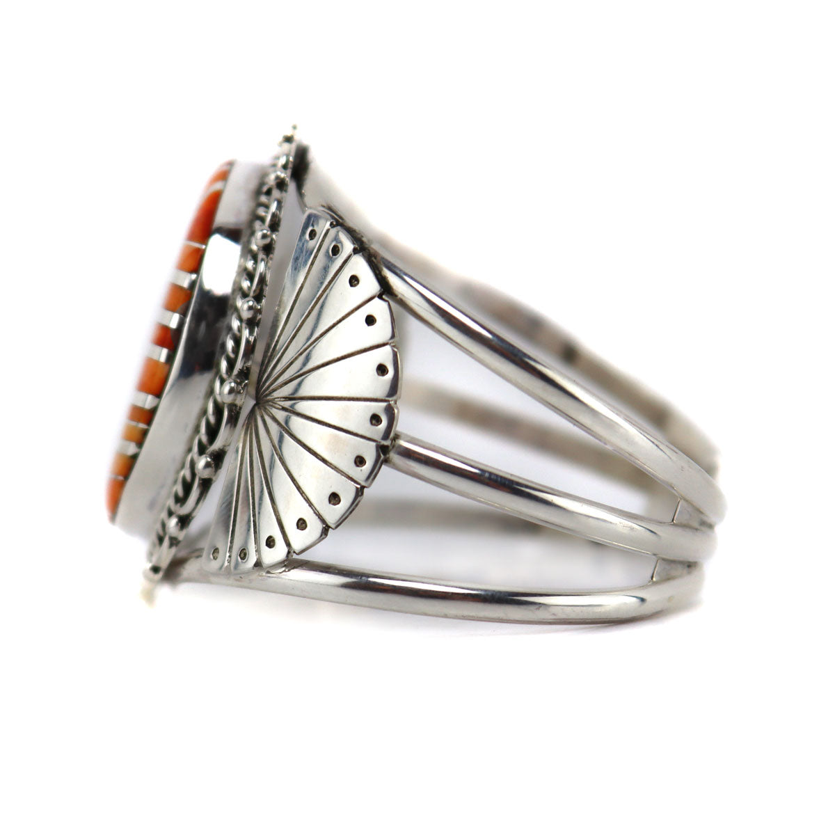 Lee and Verna Wesley - Navajo - Contemporary Spiny Oyster Channel Inlay and Sterling Silver Bracelet with Stamped Design, size 7.25