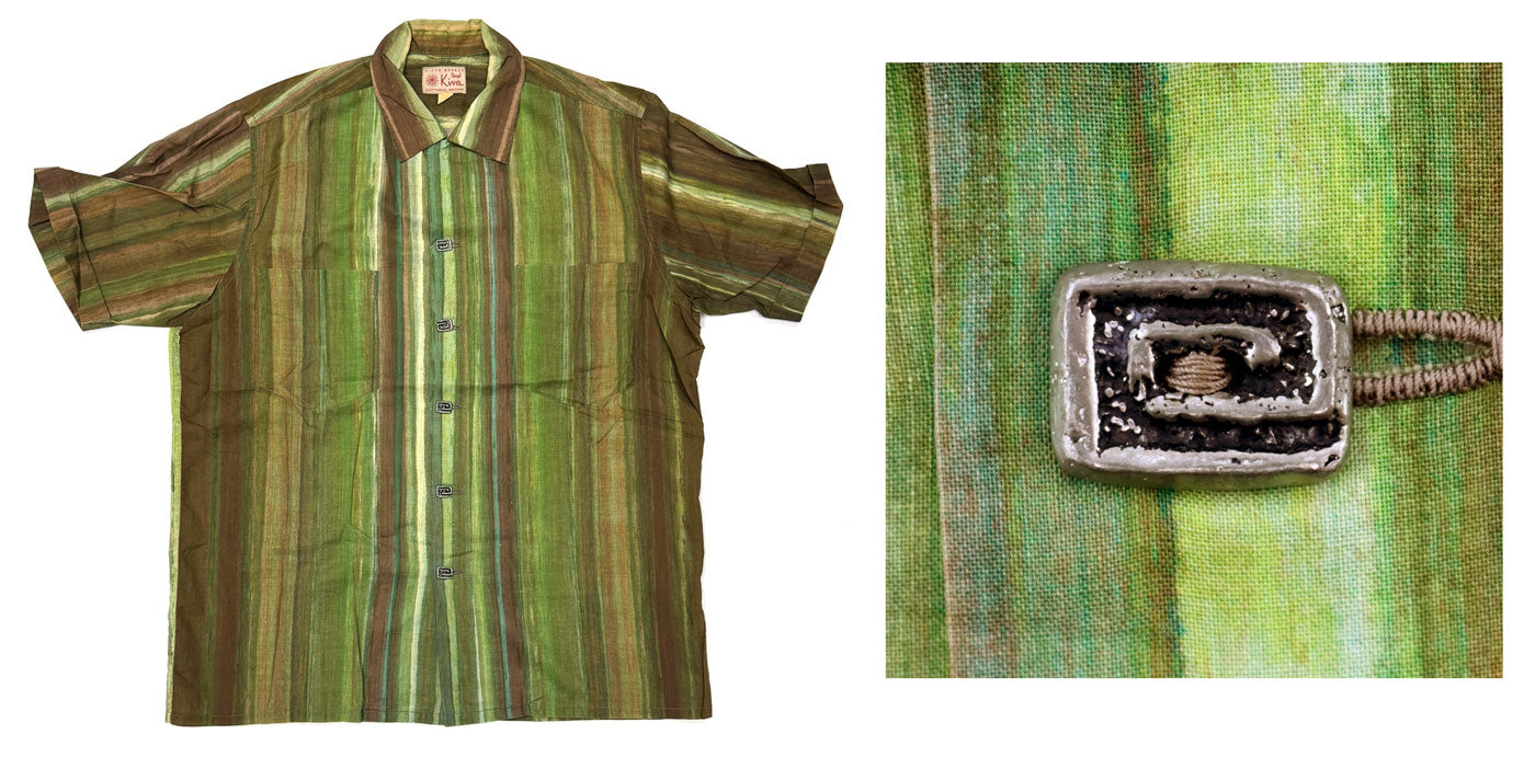 Lloyd Kiva New (1916-2002) - Cherokee Button-Up Shirt with Charles Loloma Silver Sandcast Buttons c. 1950s, 29.75" x 33.5"