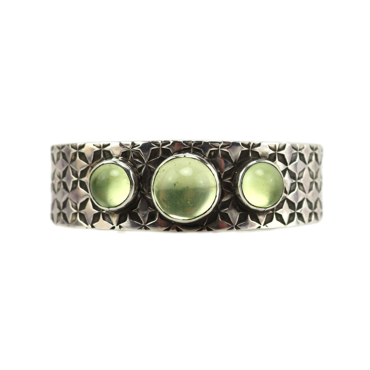 Marco Patania - Contemporary Vaseline Glass and Sterling Silver Hand-Stamped Bracelet, size 6.5