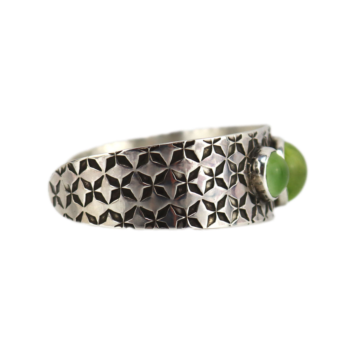 28.6g, 0.875" bandwidth, size 6.5 to include a 1" gap. Artist hallmark on verso.