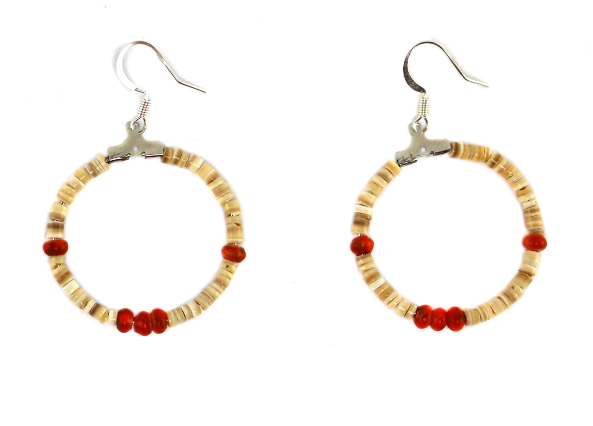 Melissa Linkin-Chavez - Navajo - Contemporary Heishi and Coral Hoop French Hook Earrings, 2" x 1.25"