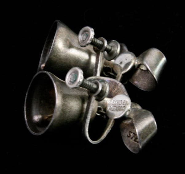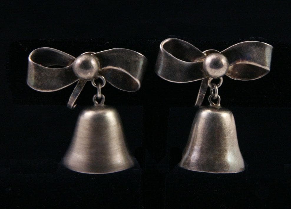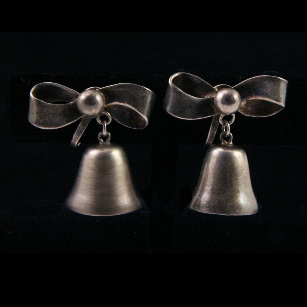 Mexican Sterling Silver Screwback Bell Earrings, c. 1940s, 1.25" x 1" (J92447-0913-017)