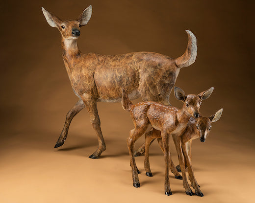 Key Deer is 33 x 36 x 18 and is an edtion of 35. All Legs is 22 x 21 x 9 and is an edition of 35.