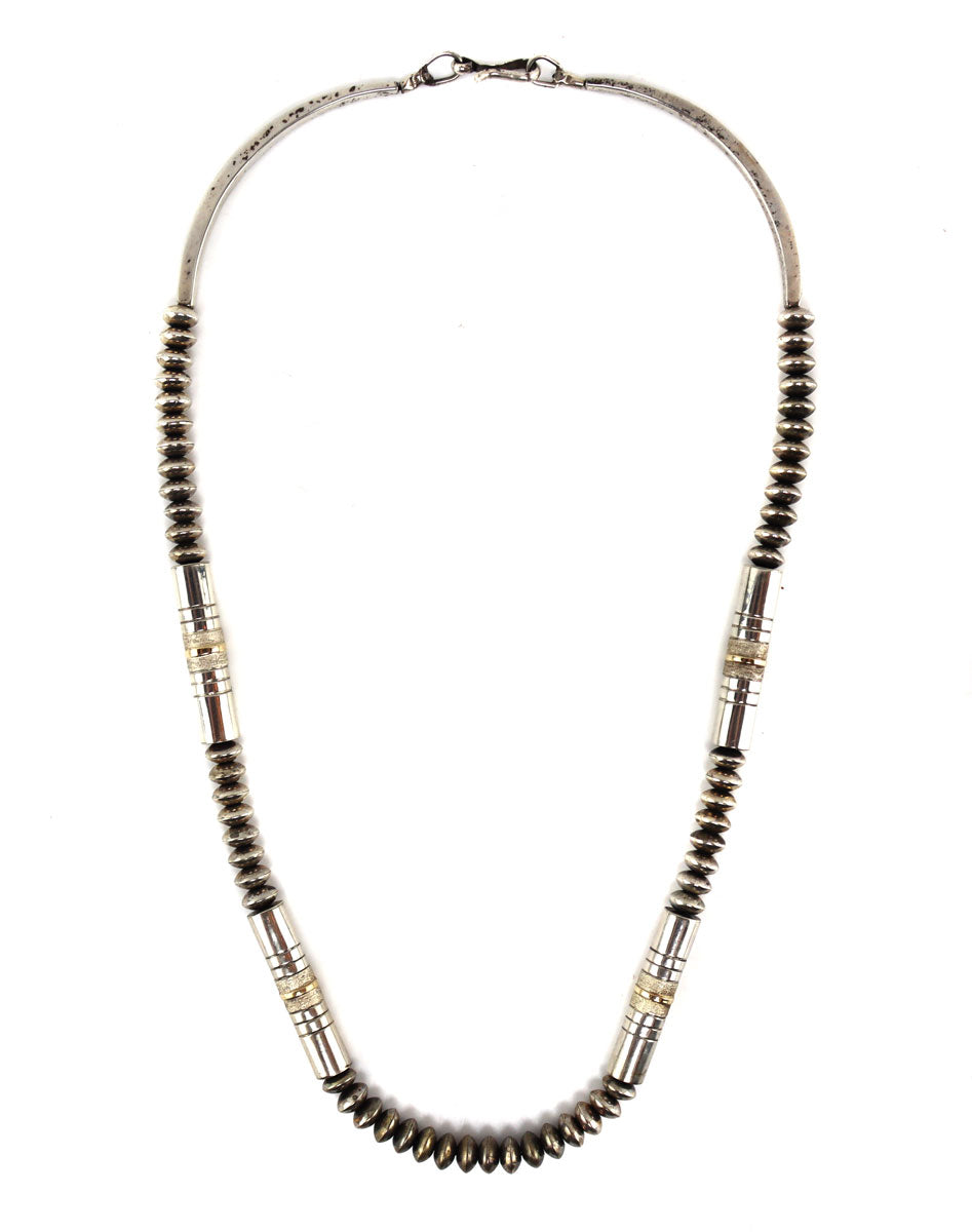 Navajo - 14K Gold and Sterling Silver Beaded Necklace c. 1990s, 23.75" length