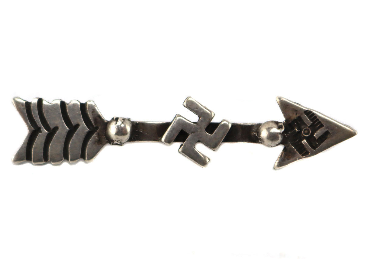 Navajo - Fred Harvey Silver Arrow Pin with Whirling Logs Design c. 1930s, 0.375" x 1.625"