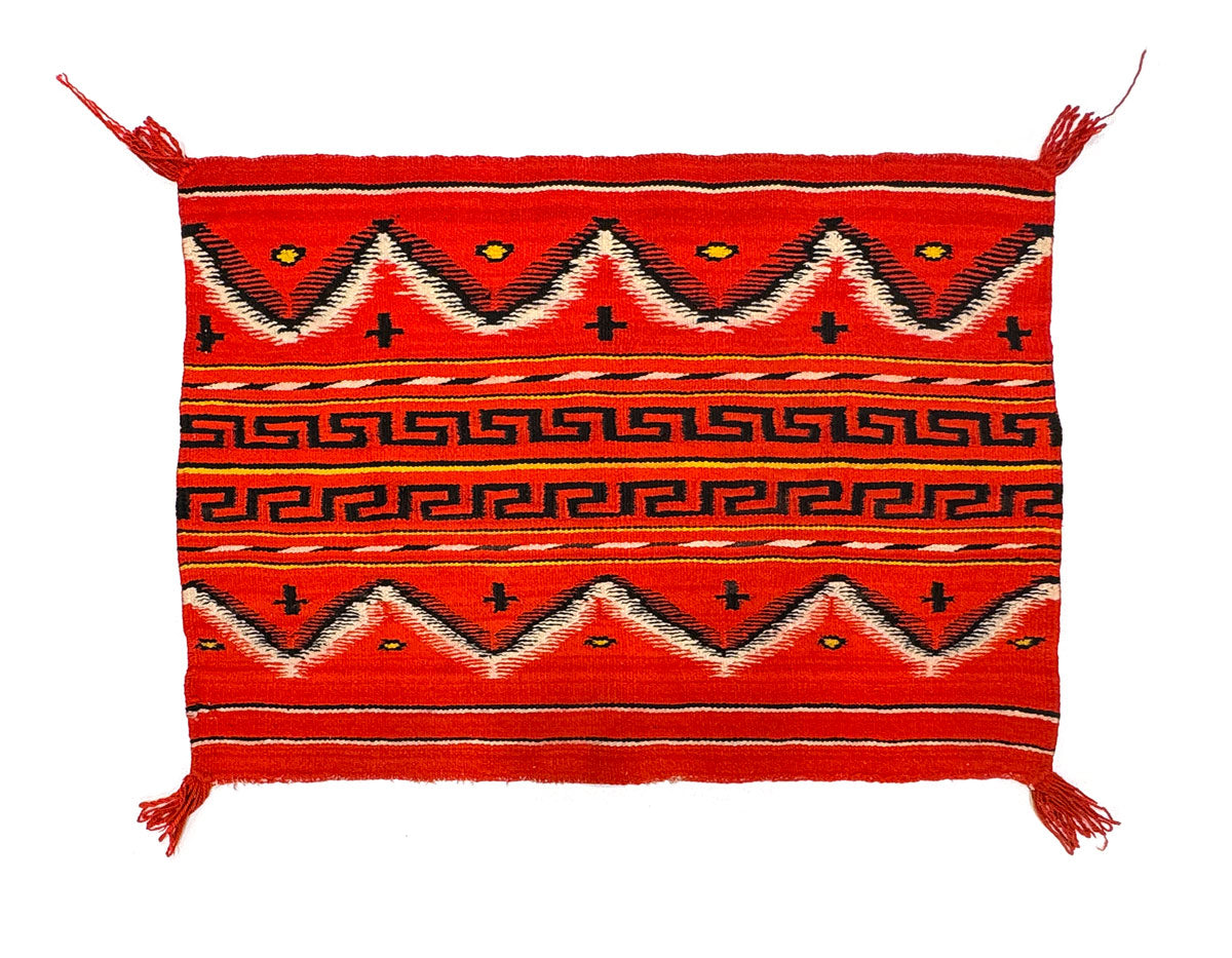 Navajo Germantown Single Saddle Blanket with Crosses c. 1890s, 25" x 34.5"