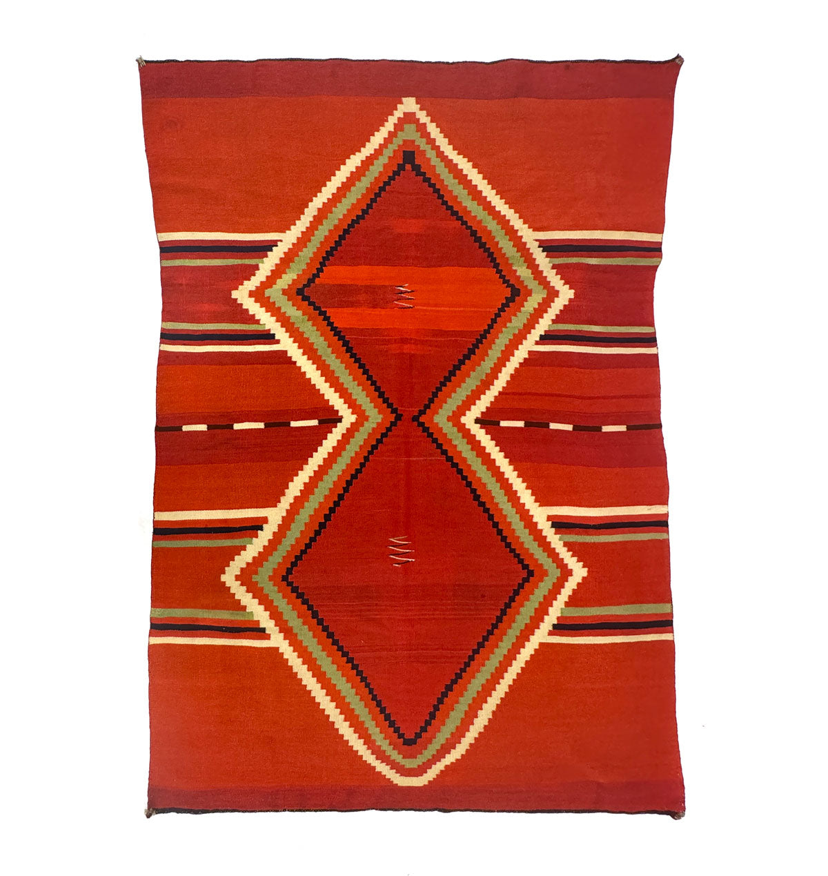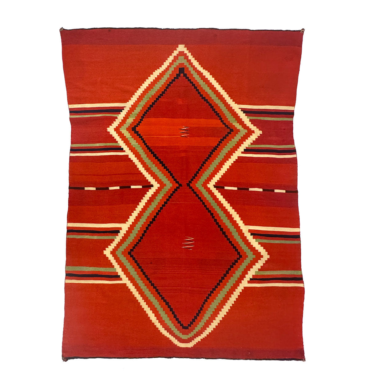Navajo Late Classic Blanket with Raveled Bayeta and Indigo Dye c. 1870s, 70.5" x 50"