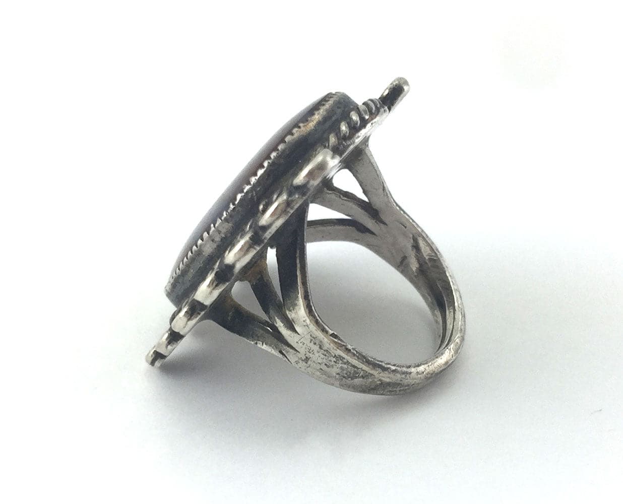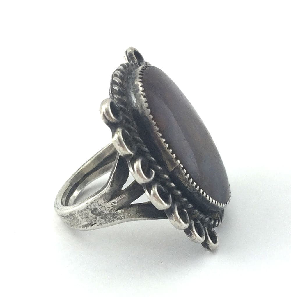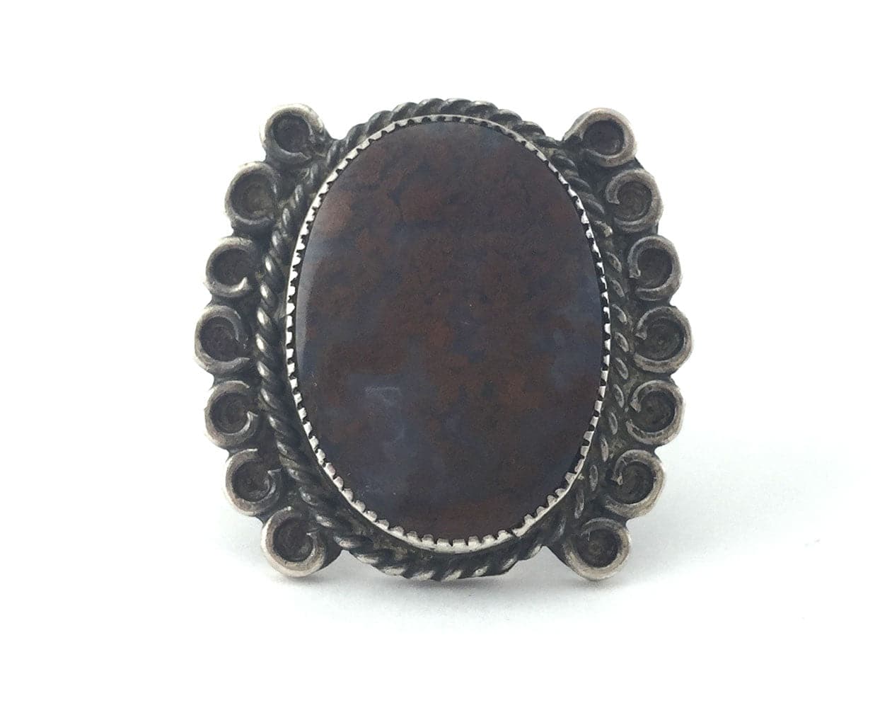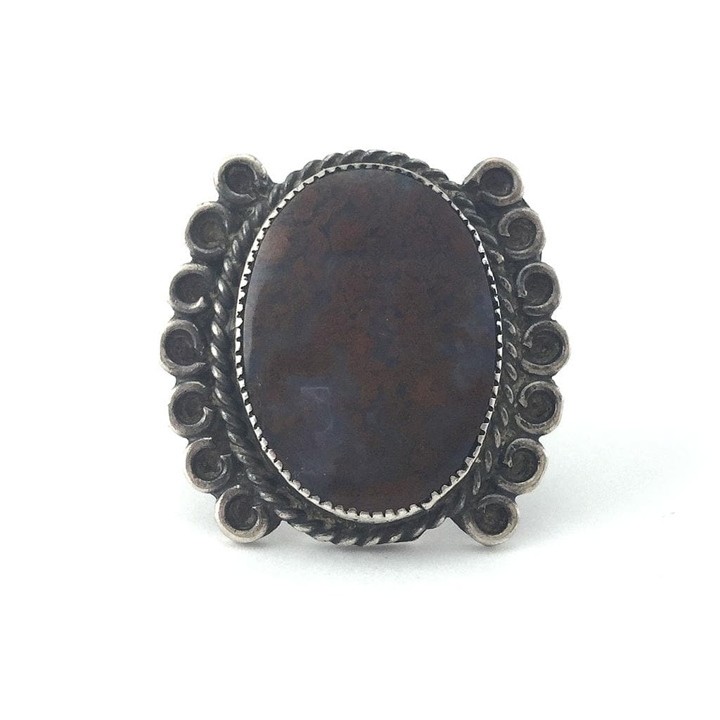 Navajo Petrified Wood and Silver Ring c. 1930s-40s, size 6 (J7113)