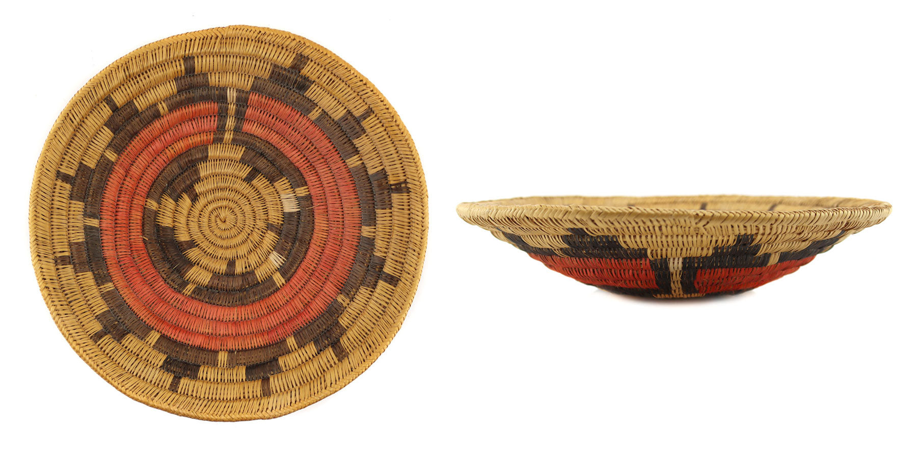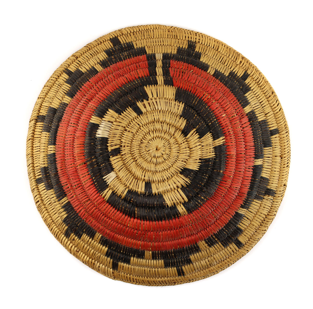 This basket is in very good condition, with minor surface wear and a few missing stitches to the rim. Ex Arizona collection.