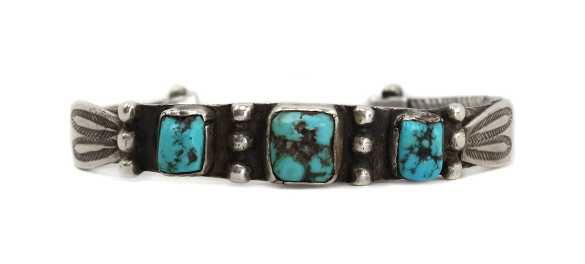 Navajo Turquoise and Silver Bracelet c. 1920s, size 7 (J15189)