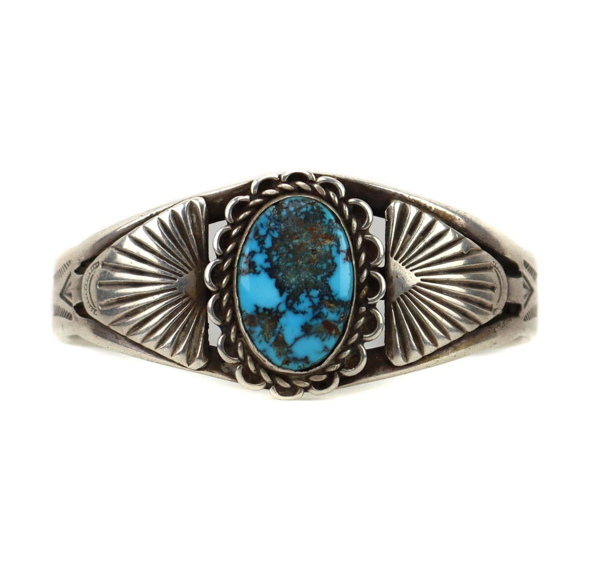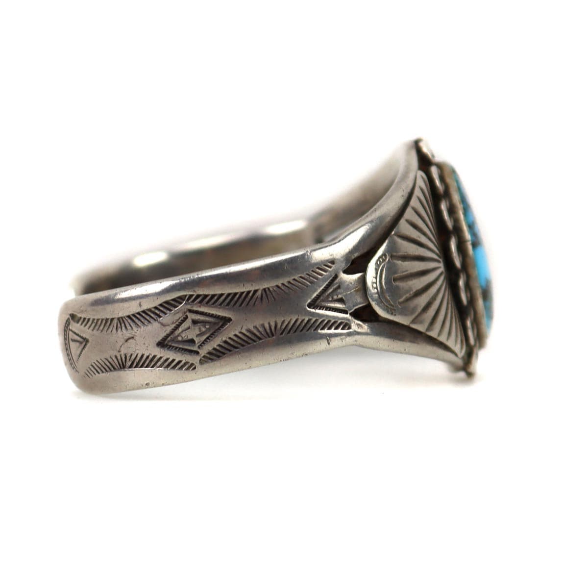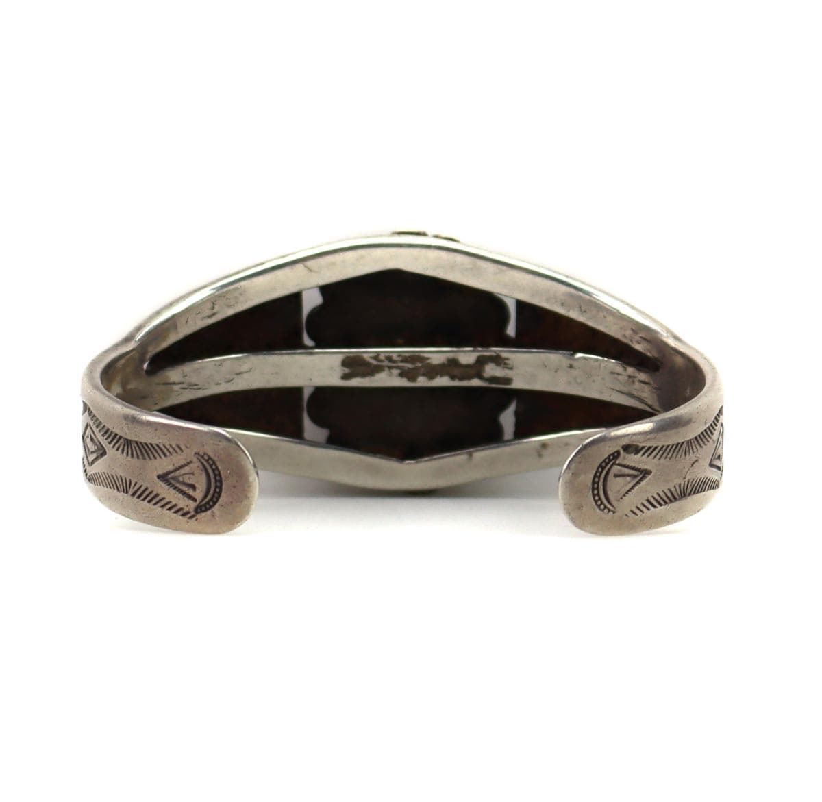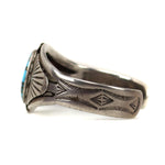 Navajo Turquoise and Silver Bracelet with Stamped Design c. 1940s, size 6.75 (J14853)