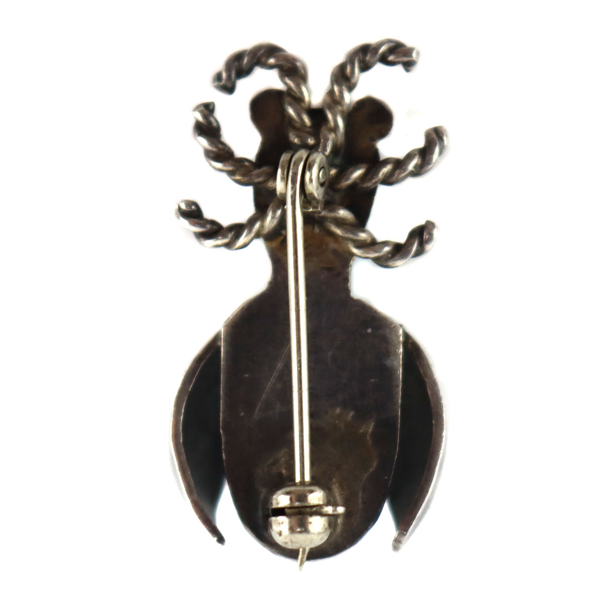 Navajo - Turquoise and Silver Bug Pin with Stamped Designs c. 1960-70s, 1.125" x 0.625"