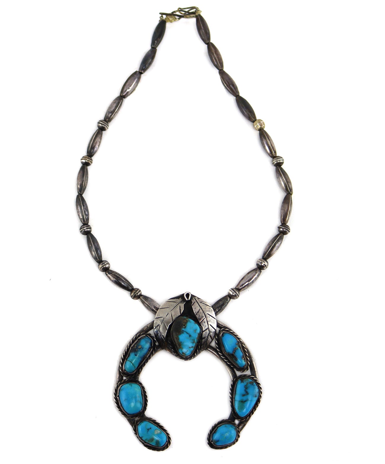 Navajo - Turquoise and Silver Beaded Necklace with Naja Pendant c. 1960s, 3" x 2.75" pendant