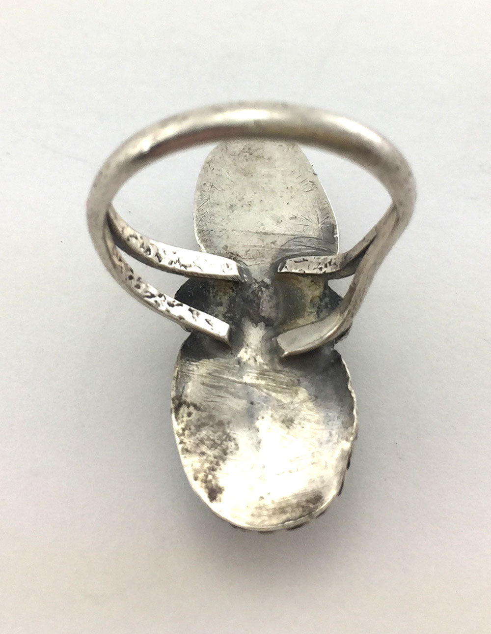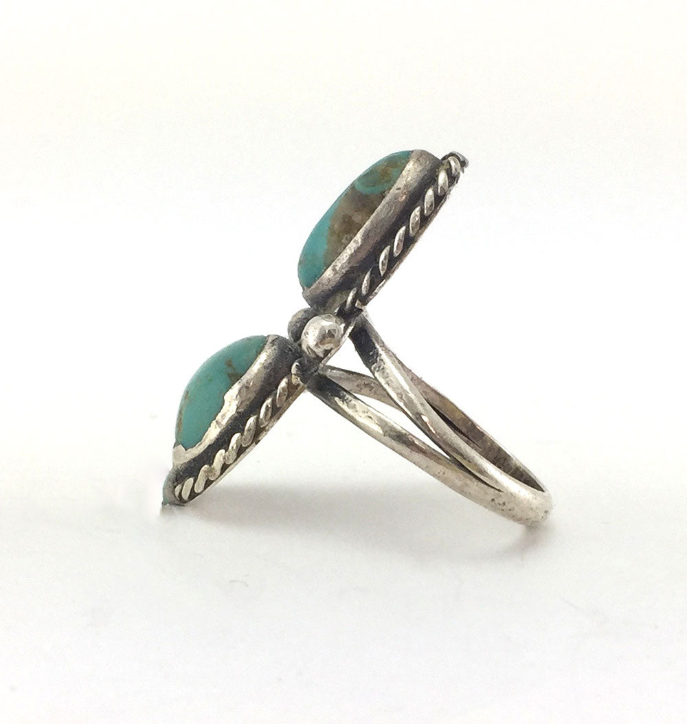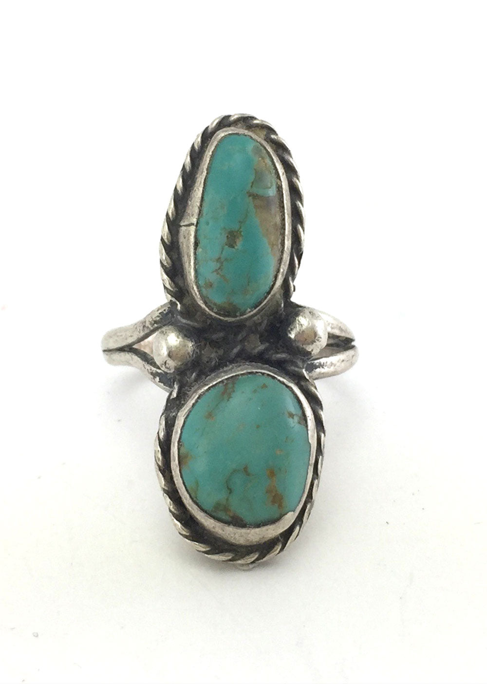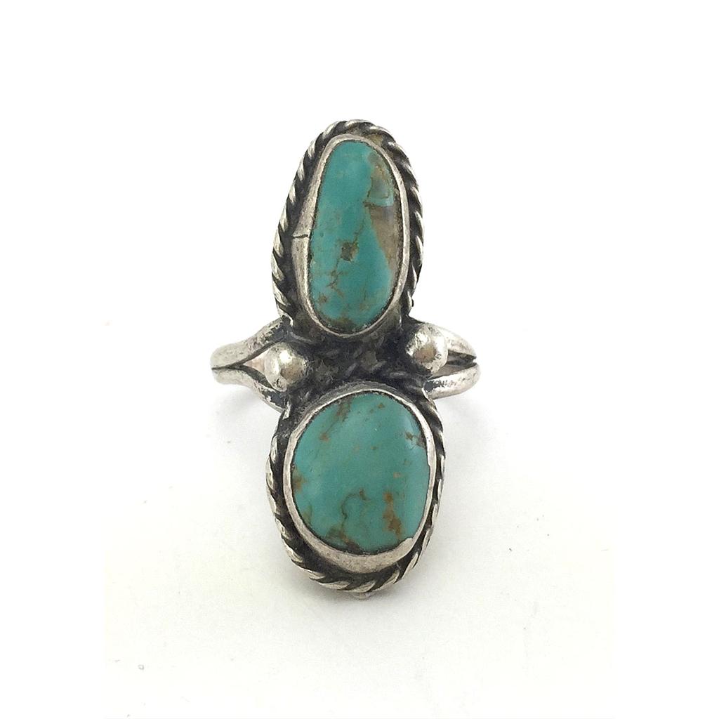 Navajo Turquoise and Silver Ring c. 1940s, size 5.5 (J6830)