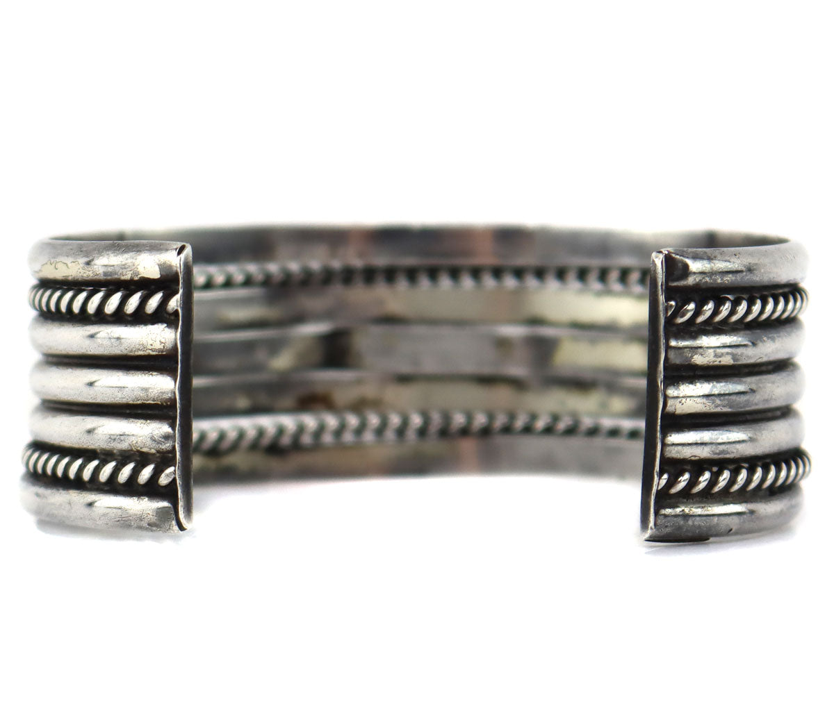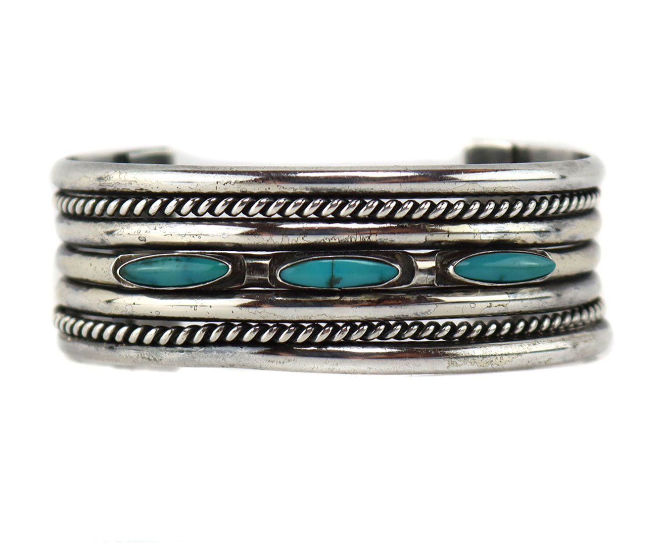 Navajo - Turquoise and Silver Row Bracelet with Twist Design c. 1950s, size 7