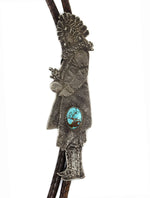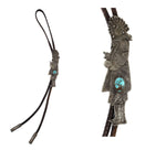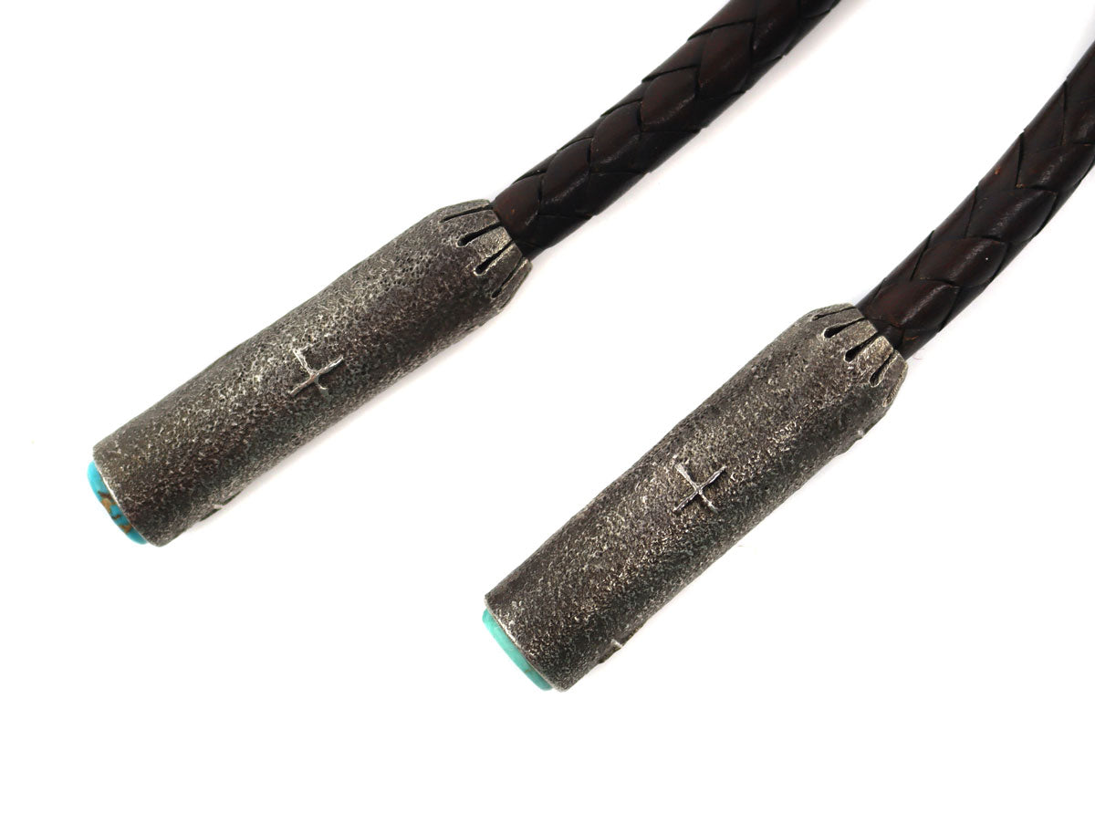 Oreland Joe Sr. (b. 1958) - Navajo - Contemporary Turquoise, Silver Tufacast, and Leather Bolo Tie, 5.75" x 1.5" bolo
