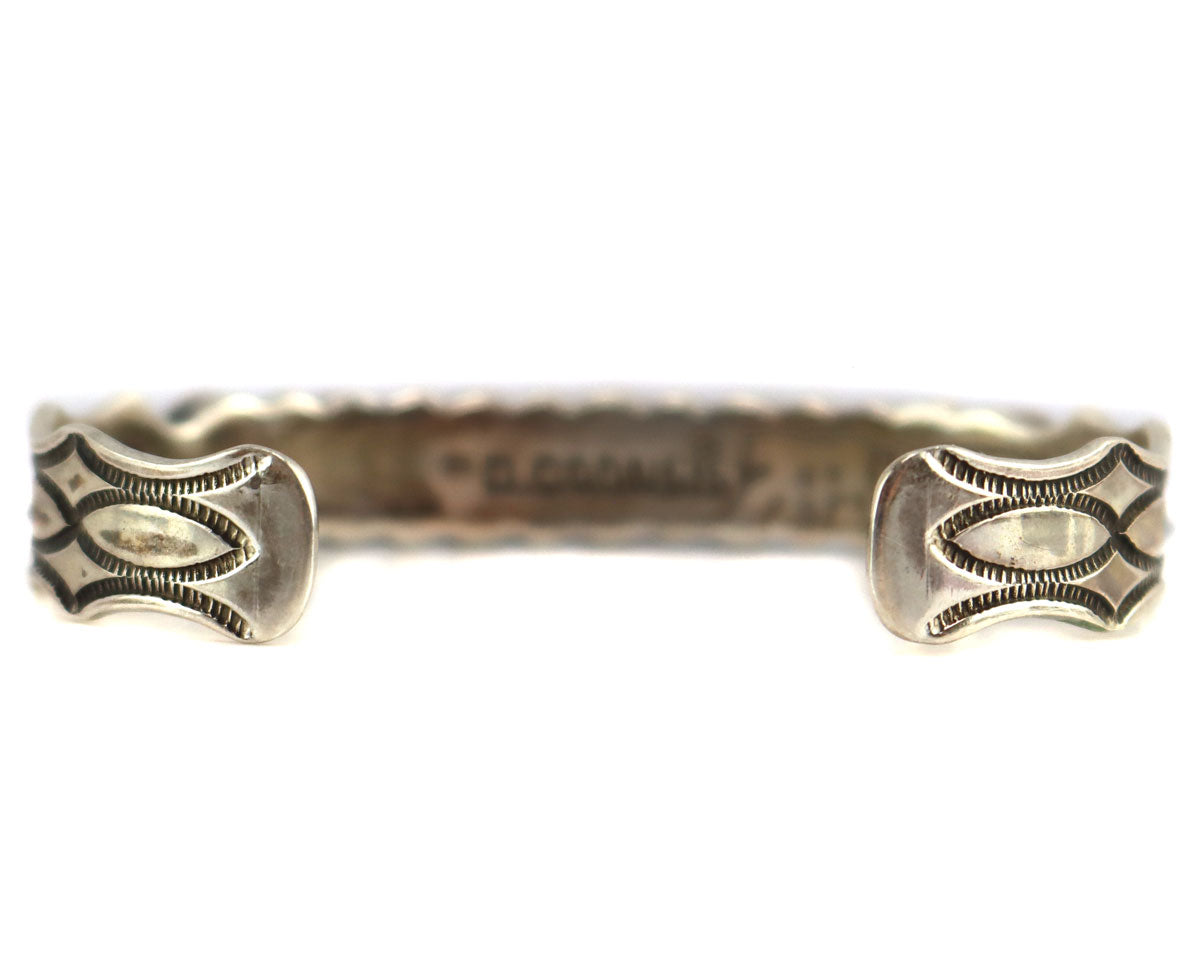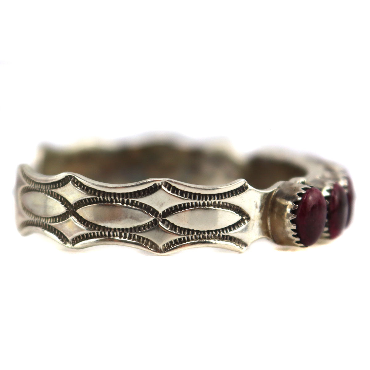 Paylee and Darlene Coonsis - Zuni - Purple Spiny Oyster and Silver Row Bracelet with Stamped Design c. 1980-90s, size 6.25