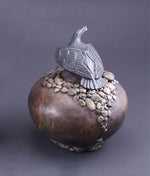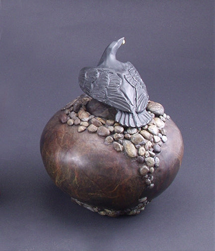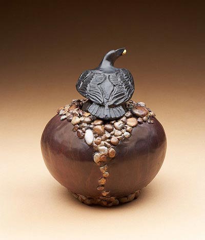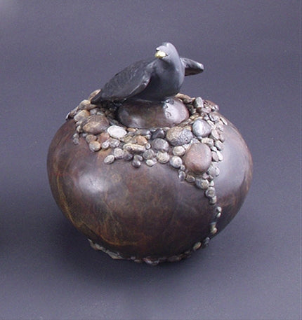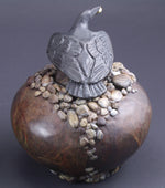 6″"The creation of fetishes, effigies, and talismans goes back to the earliest evidence of mankind. The compulsion to make aesthetic objects displays the creative spark that distinguished Homo Sapiens from Neanderthals; it is a unique providence of the human mind. First expressed in stone carvings and cave wall paintings from the Paleolithic Period, it has continued throughout the centuries and across all cultures. When mankind is in tune with the natural environment, he is acutely aware of the strengths inherent in other species in order to learn useful survival skills . . . such as the bear for finding healing herbs, the coyote for clever prowess, the deer for evasive tactics. By creating their likeness, the recreation becomes the physical embodiment for the particular characteristic the animal symbolizes for the maker. And, as every creature has it’s unique qualities, so have other elements such as stone, feather and bone, which when added to the fetish increases it’s significance. The object then has become the recipient vessel of the energy given it, spiritual liaison for the bearer, containing the energy. This magic spark can then be called upon when needed, whether it be courage, fortitude, clarity in vision or healing powers. As an extension of this most primal understanding that goes back to the very roots of our being, I feel that all objects of art contain an energy endowed by it’s maker. It is this very mystery I wished to explore in this body of work, and encourage viewers to contemplate. It is partly influenced by those contemporary artists who have reminded me of these mysterious corners of my mind, but mostly by the ancients whose brilliance fascinates and inspires me above all, and on whose shoulders we all stand." - Star Liana York