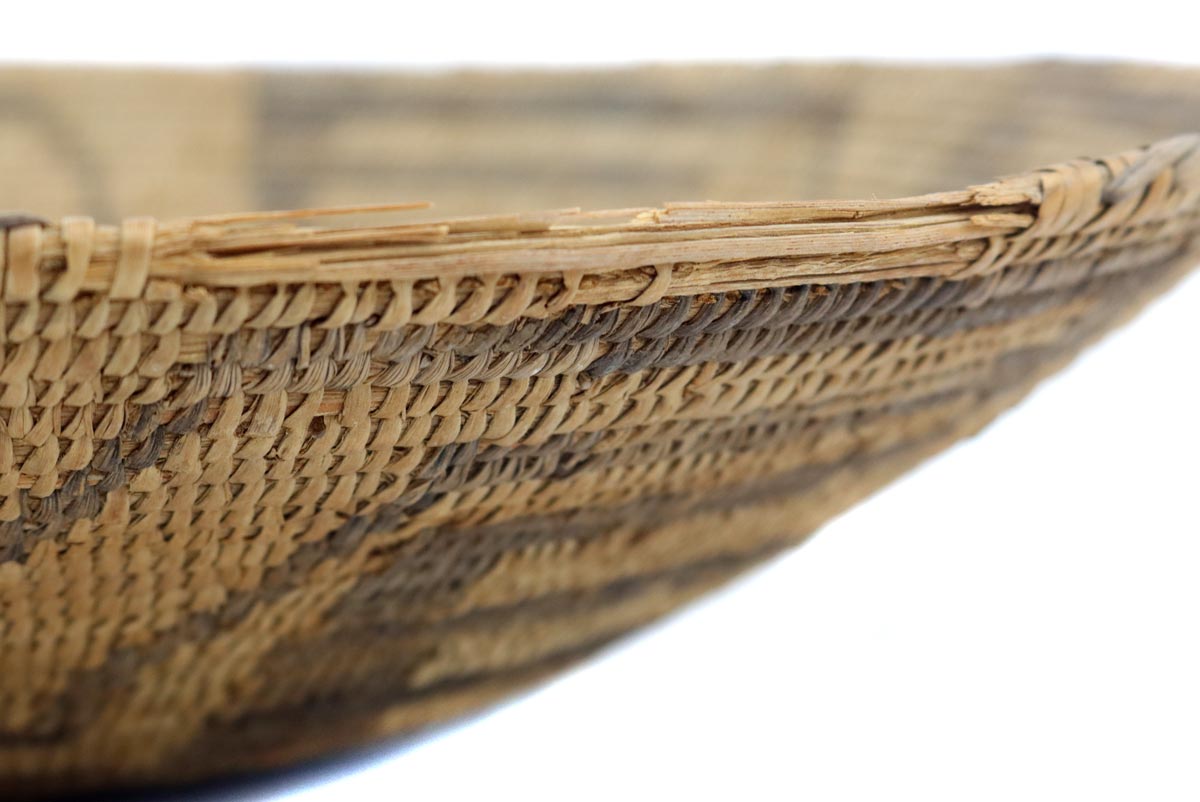 This basket has slight surface wear, stitch loss, and breaks to the rim. Acquired from a private collection in Nevada.