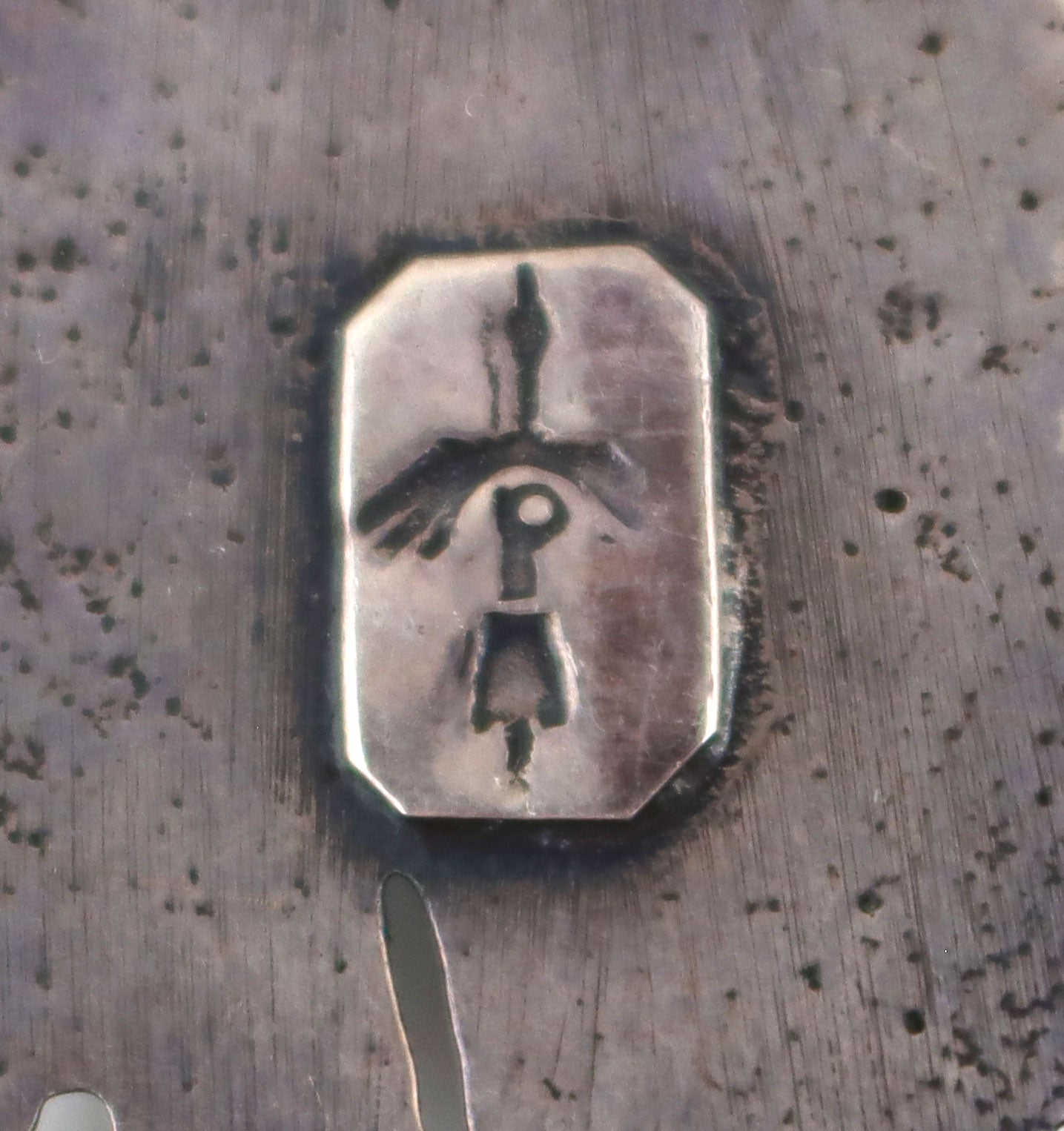 86.1g, 17" length, 2.5" x 1" pendant. Stones include turquoise, howlite, coral, and jet. Hallmarked by the artist on verso. Preston Monongye was an award-winning artist and silversmith. His uncle and mentor was the famous Hopi silversmith, Gene Pooyouma. Monongye created works for Tanner's Indian Arts and Crafts Center in Gallup, New Mexico, and later taught the craft at the Phoenix Indian Center during the mid-1970s. Monongye was also a skilled painter and woodworker.