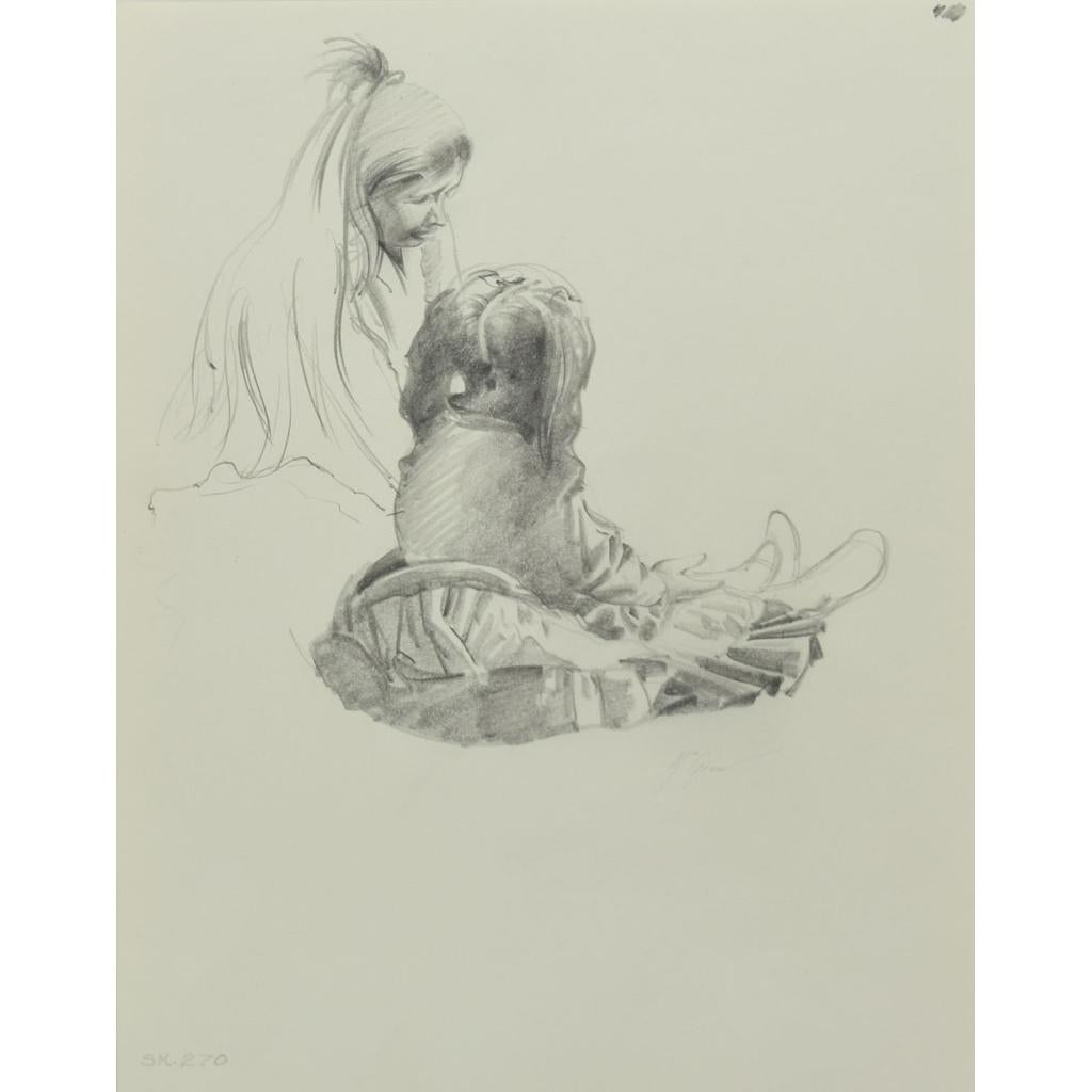 Signed lower right corner. 11" x 8.5" unframed. Acquired from original family. The owner is the daughter of the artist. Includes copies of photographs: artist sleeping in a hogan in 1970, artist with his wife in 1988, artist c. 1977, artist with his horse Silver in Cottonwood, AZ 1967. R. Brownell McGrew is well-known for his large paintings with brilliant color and are in collections such as the Gilcrease Museum, Cowboy Artists of America, the Eiteljorg Museum, and many private collections. The Heard Museum in Phoenix, Arizona has thousands of his photographs and his extensive journals on his trips to the Navajo and Hopi reservations. McGrew's personal pencil sketches remained with his personal papers and family collections. A portion of the proceeds from the purchase of this item will be donated to Adopt-A-Native-Elder Program. There are nearly 700 Navajo Elders ages 75 to 100 enrolled as adopted Elders in the Adopt-A-Native-Elder Program. At Mark Sublette Medicine Man Gallery, we feel this is an important cause to help support food security to the elderly on the Navajo Nation. There are over 15,000 people who live in poverty on the Navajo Nation.