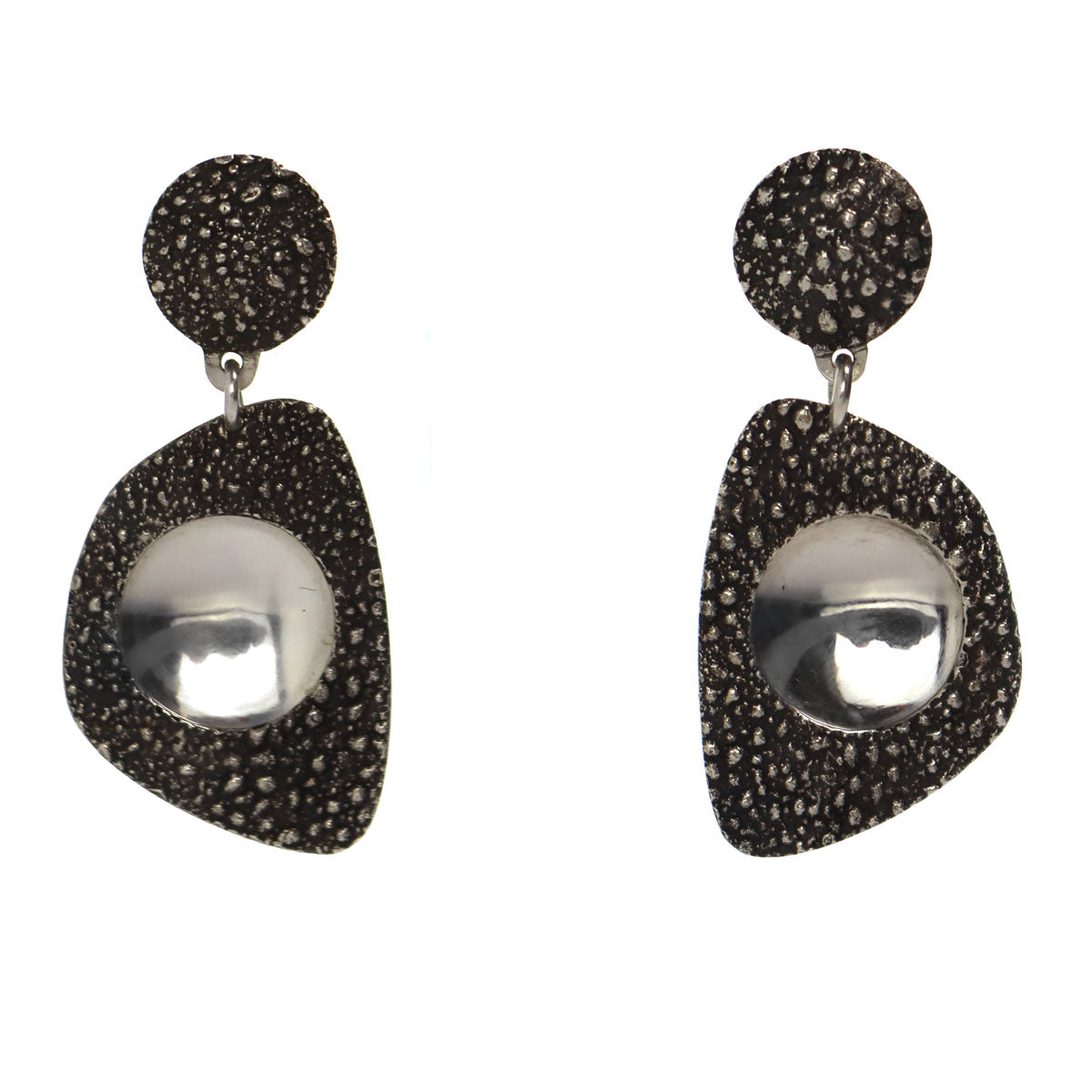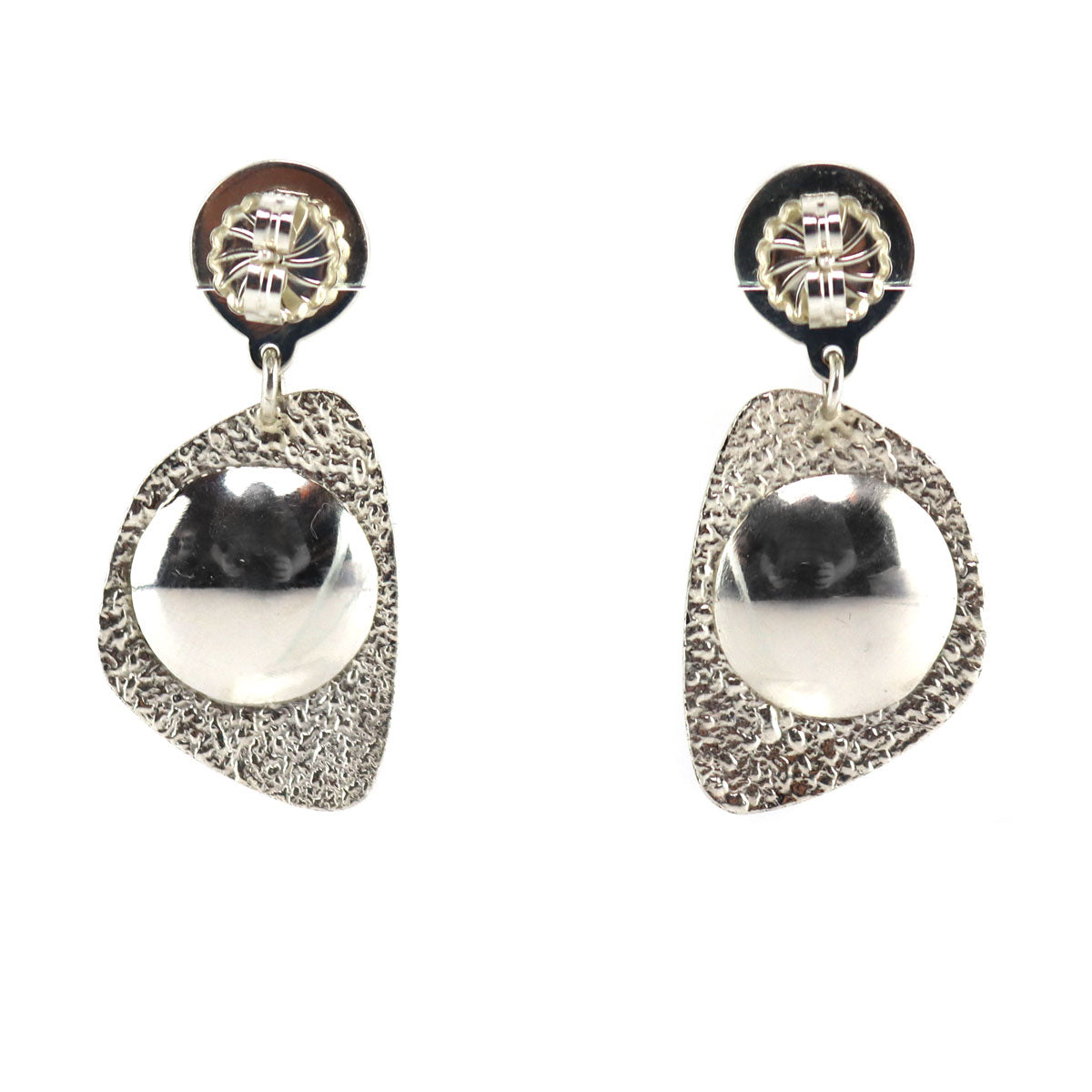Raynard Scott (b. 1965) - Navajo - Contemporary "Lunar" Sterling Silver Post Earrings, 1.875" x 0.875"