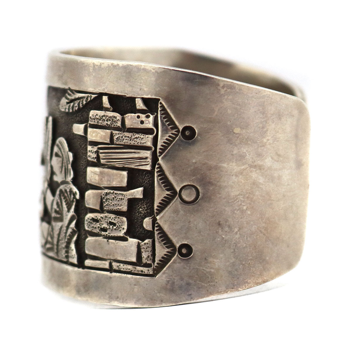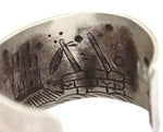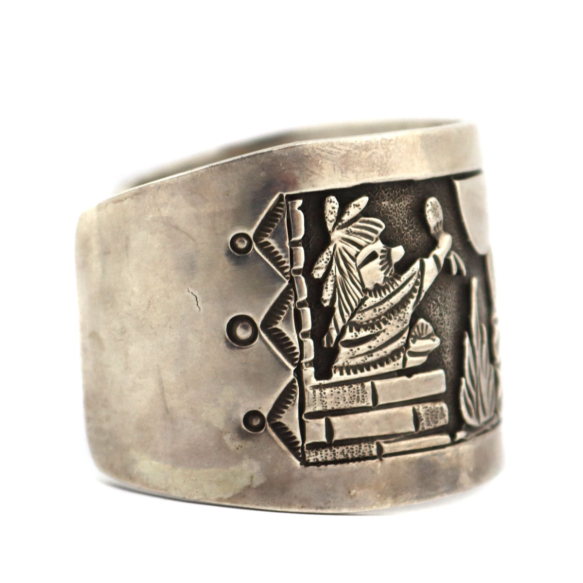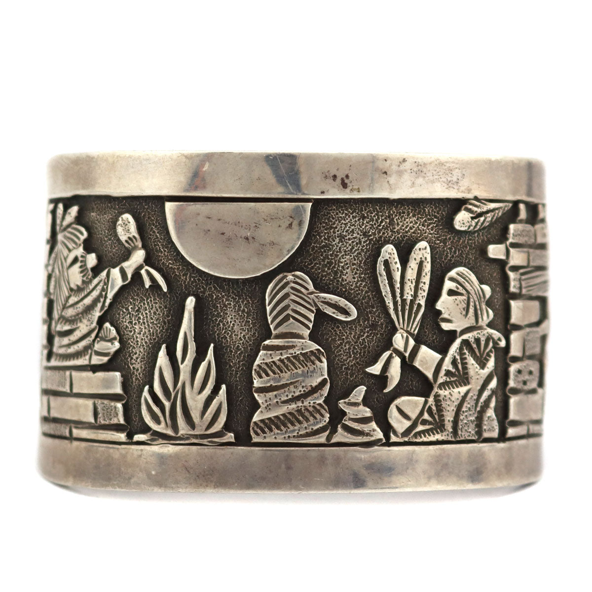 Robert Becenti Jr. (1949-2001) - Navajo - Sterling Silver Overlay Bracelet with Kachina Scene Pictorials c. 1980s, size 6.75